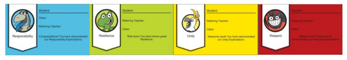 Rewards motivate and embed positive behaviours, and are always connected to specific praise. Consultation in years past let us know our community prefers rewards aren’t tangible stuff. Our community prefer communal celebrations, where we do fun things together. Out in the yard, we give students Value cards, which lead up to a certificate at assembly as well as the whole school celebration. In the classroom, good choices are acknowledged with tally marks, which move the class around a reward wheel, with intervals leading to 5 minutes early play and eventually a class party.