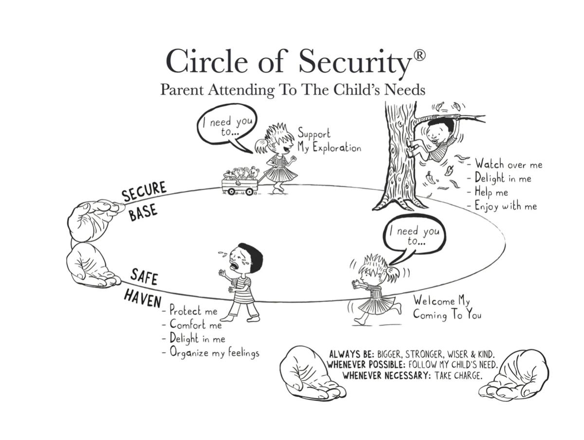 You are such an important guide for your child through anxious feelings. Part of that is modelling your own anxious feelings and coping strategies, so they know it's a normal experience, can recognise anxiety and know there's things we can do about it. Another part is being the strong rock that guides children through and beyond worries. Berry Street training that the teachers attended earlier this year introduced us to the circle of security. It's a really nice representation of how an adult needs to both encourage a child to be brave and also be there for them when things get hard.