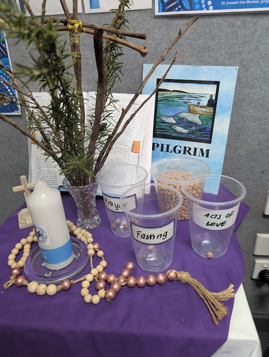 In classrooms, students and staff are participating in daily prayer, looking for opportunities to fast by giving their time, talents and skills to help others and giving acts of love and kindness as Almsgiving. To help make this time of preparation, our school community is observing and naming moments of prayer, fasting and acts of love and kindness given in the school community. Each class is collecting a chickpea record of these acts of service and contributing these to the display in the office.