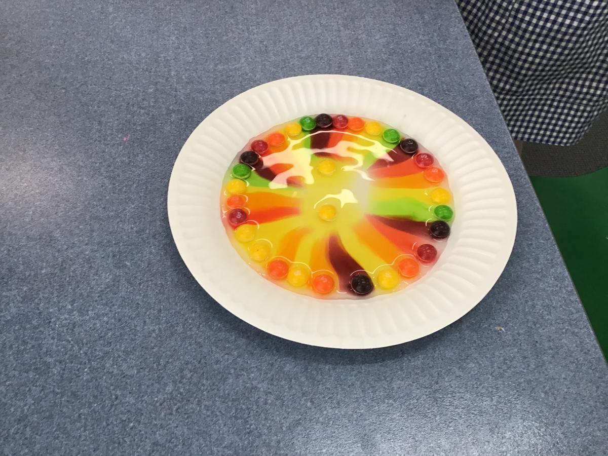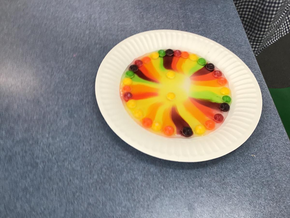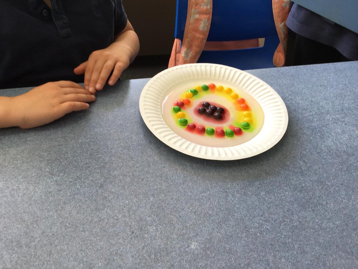 At the end of last term, the students completed a science experiment with Miss P. They got to use Skittles and watch the colour come out of the Skittles to create a colourful pattern. They also had a go at completing some water work experiments.