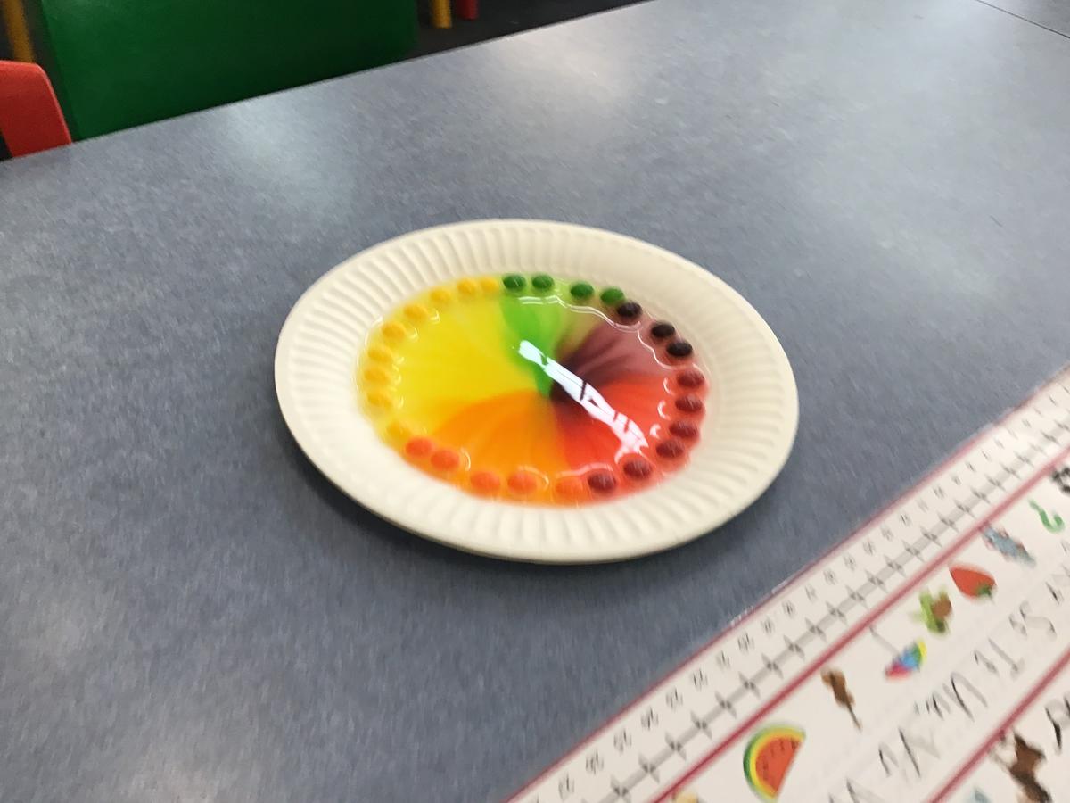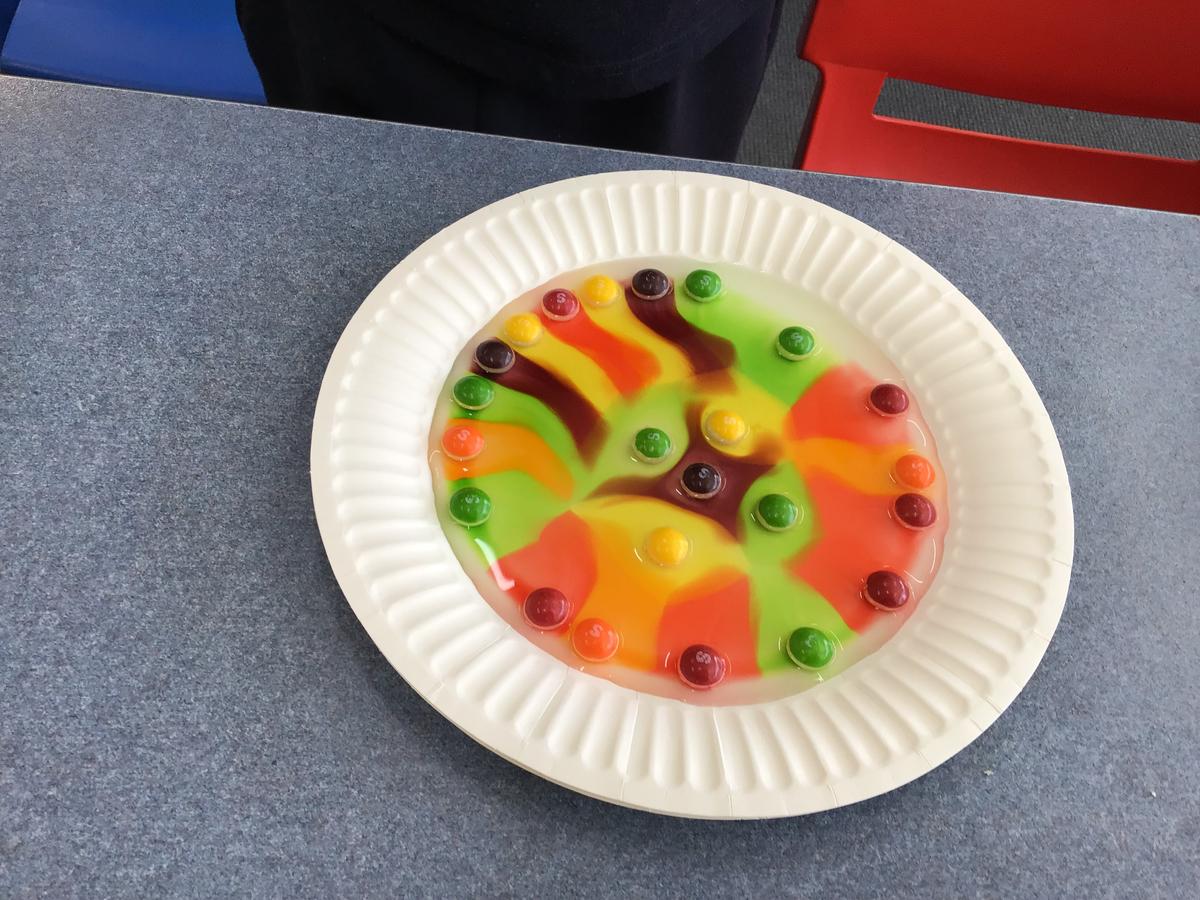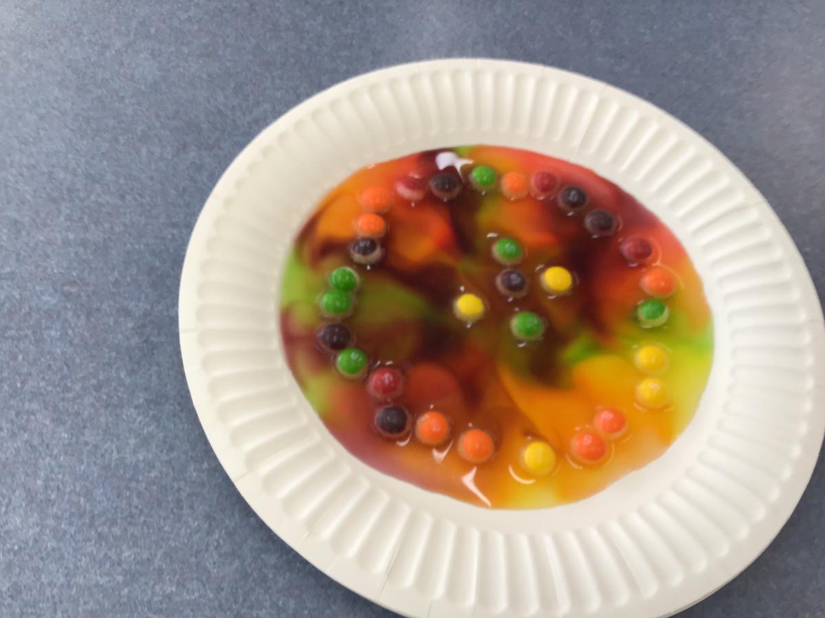 At the end of last term, the students completed a science experiment with Miss P. They got to use Skittles and watch the colour come out of the Skittles to create a colourful pattern. They also had a go at completing some water work experiments.