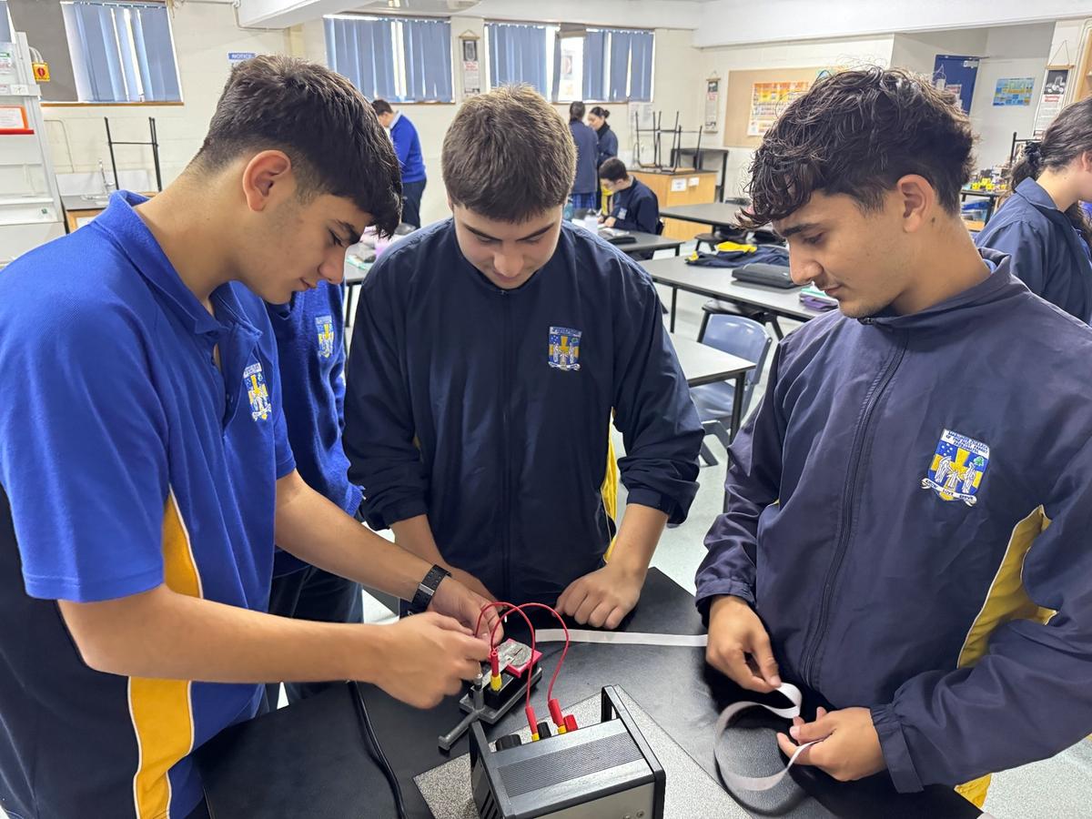 Ms Carlos’s Year 10 Physics class has been actively exploring the principles of motion as part of their Stage 5 studies. In a recent series of practical lessons, students used ticker timers—classic tools in physics experiments—to investigate how objects move and how we can measure their speed, acceleration, and changes in velocity.