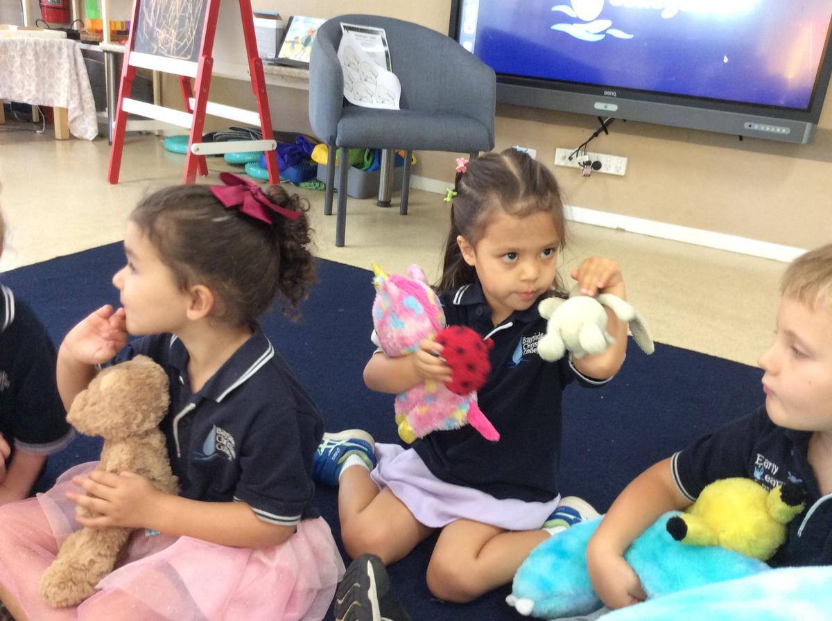 The children paraded their toys around the classroom whilst listening to some teddy-bear-themed music. They took their toys outside for a Teddy Bears' Olympics. We read "Brian the Bear Smells Something Smelly" by Mark Chambers. The children ate their snack on a picnic mat with their stuffed toys, and engaged in a group sorting activity, to sort small teddy bears by color.