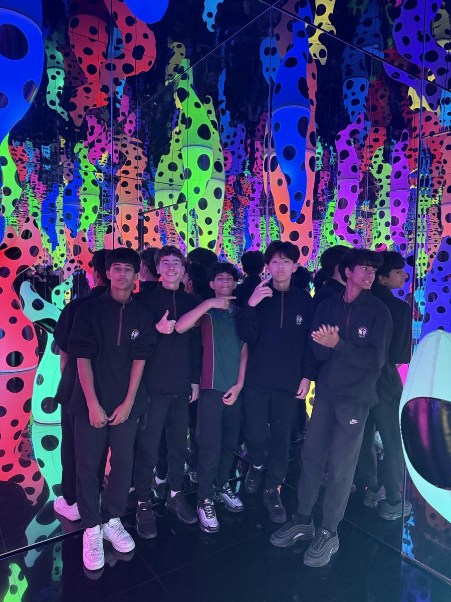 Next came the highlight of the trip – the Yayoi Kusama exhibition, a mesmerising journey into the mind of one of the world’s most celebrated contemporary artists. From the immersive infinity rooms to Kusama’s iconic polka dots and pumpkin sculptures, the students were completely captivated. The interactive nature of the exhibition, combined with Kusama’s bold use of colour and repetition, made it a truly engaging and inspiring experience.