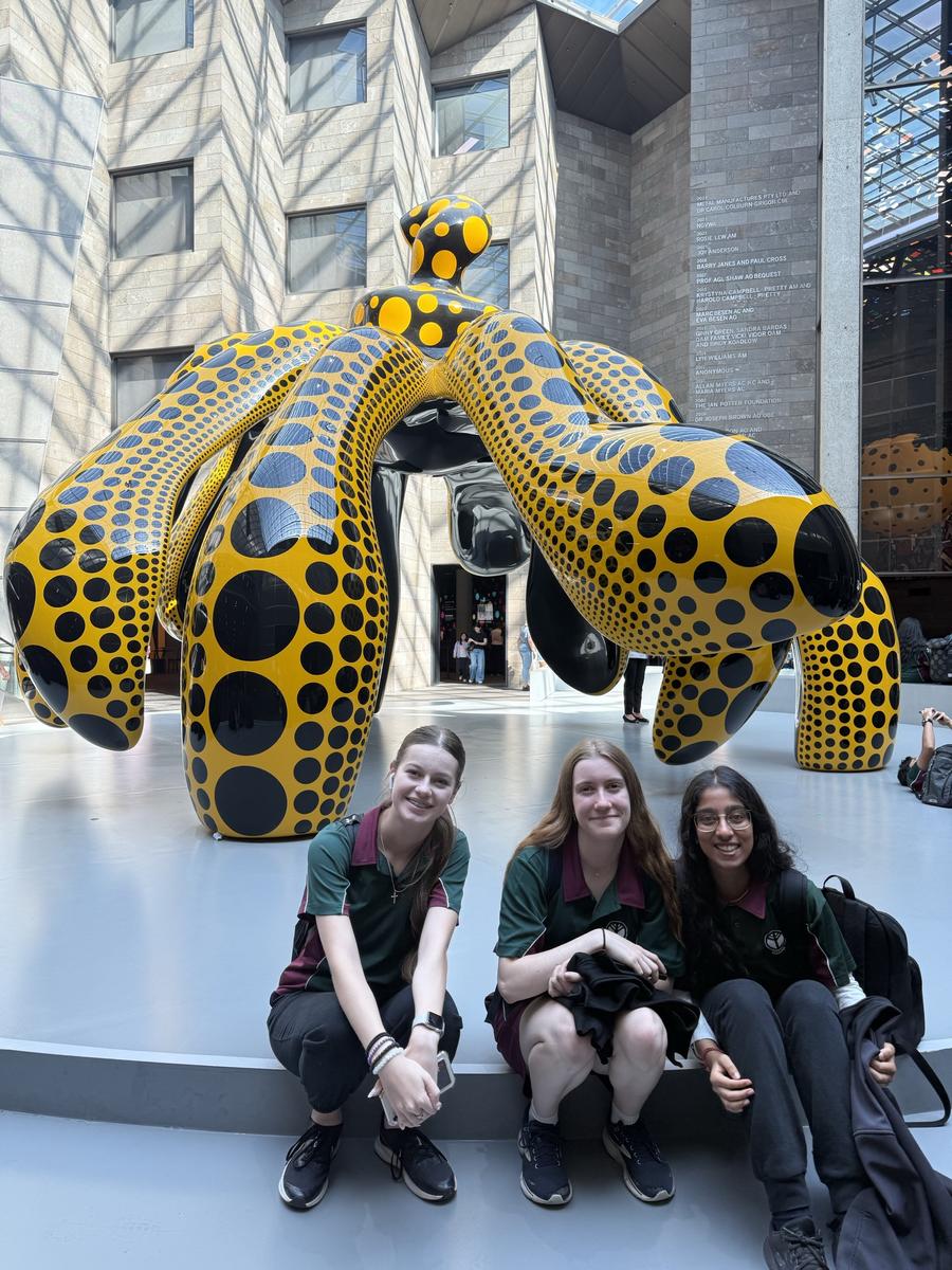 This week the Year 8/9 Sculpture class and the Year 11 Art Making and Exhibiting class embarked on an exciting excursion to the National Gallery of Victoria (NGV) for a day immersed in artistic excellence. The students had the incredible opportunity to explore both the Top Arts exhibition and the dazzling world of Yayoi Kusama, making it an unforgettable experience filled with inspiration and creativity.