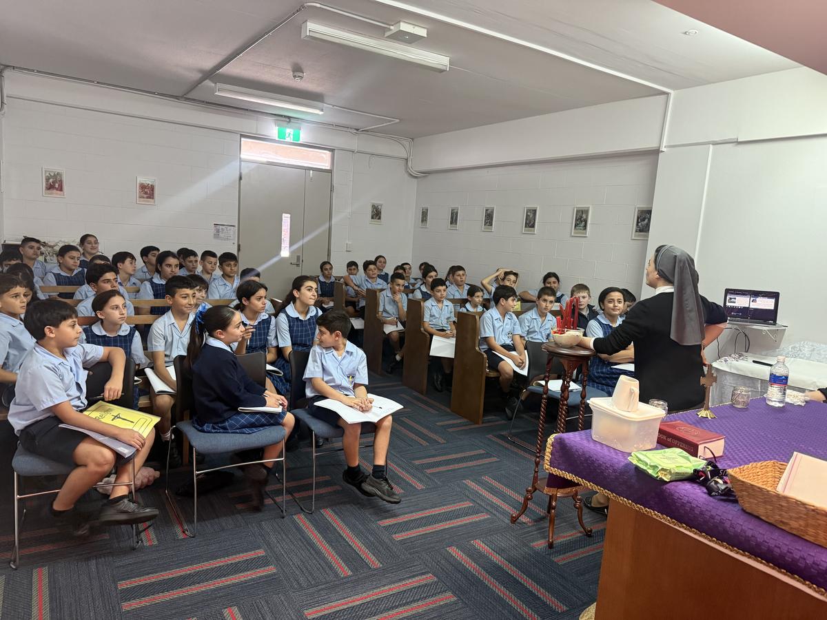 5 Opal and 5 Rainbow gathered in the chapel with Sr Rita for a special Religion lesson. They learned about the Rite of the Lamp (celebrated on Holy Wednesday) and explored the story of Job (Ayoub), reflecting on his suffering and unwavering faith in God.