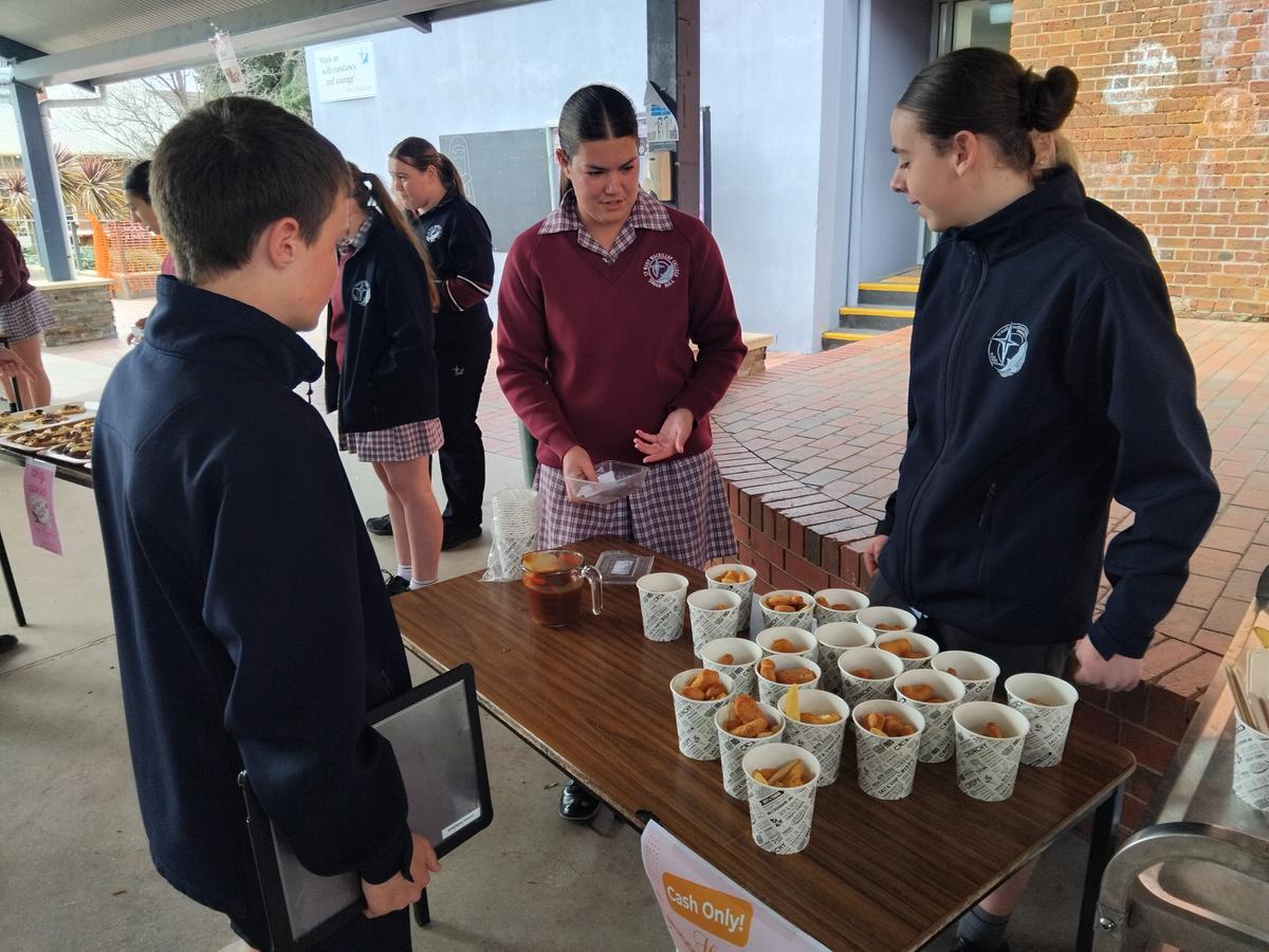 On Wednesday the 3rd of September, Year 9 and 10 students from Money Markets and Citizenship classes transformed the school into a bustling marketplace. The students, eager to put their entrepreneurial skills to the test, set up their own small businesses, offering a delectable variety of treats. Some of the delicious treats on offer were tornadoes, burgers and sushi and for the sweet tooth cookie dough, pancakes and donuts to name a few.