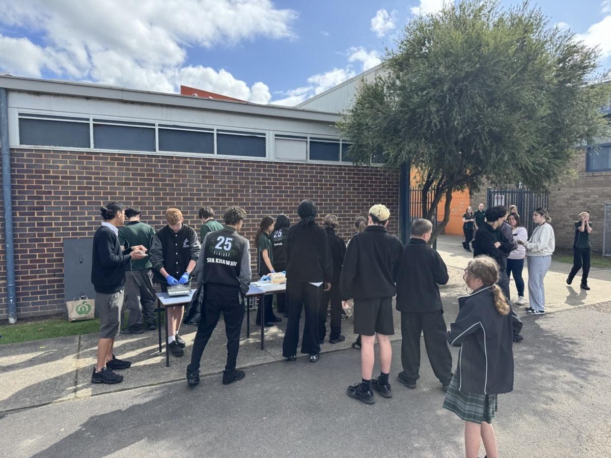 They hosted a volleyball tournament in the gym to raise awareness for homelessness and support the Australian FoodBank, encouraging staff and students to contribute non-perishable and long-life food items to the donation bins they provided. In addition, the students ran two sausage sizzle events - one for students and another on Parent/Teacher/Student Conference Day - with all proceeds going to the Australian Red Cross Foundation.