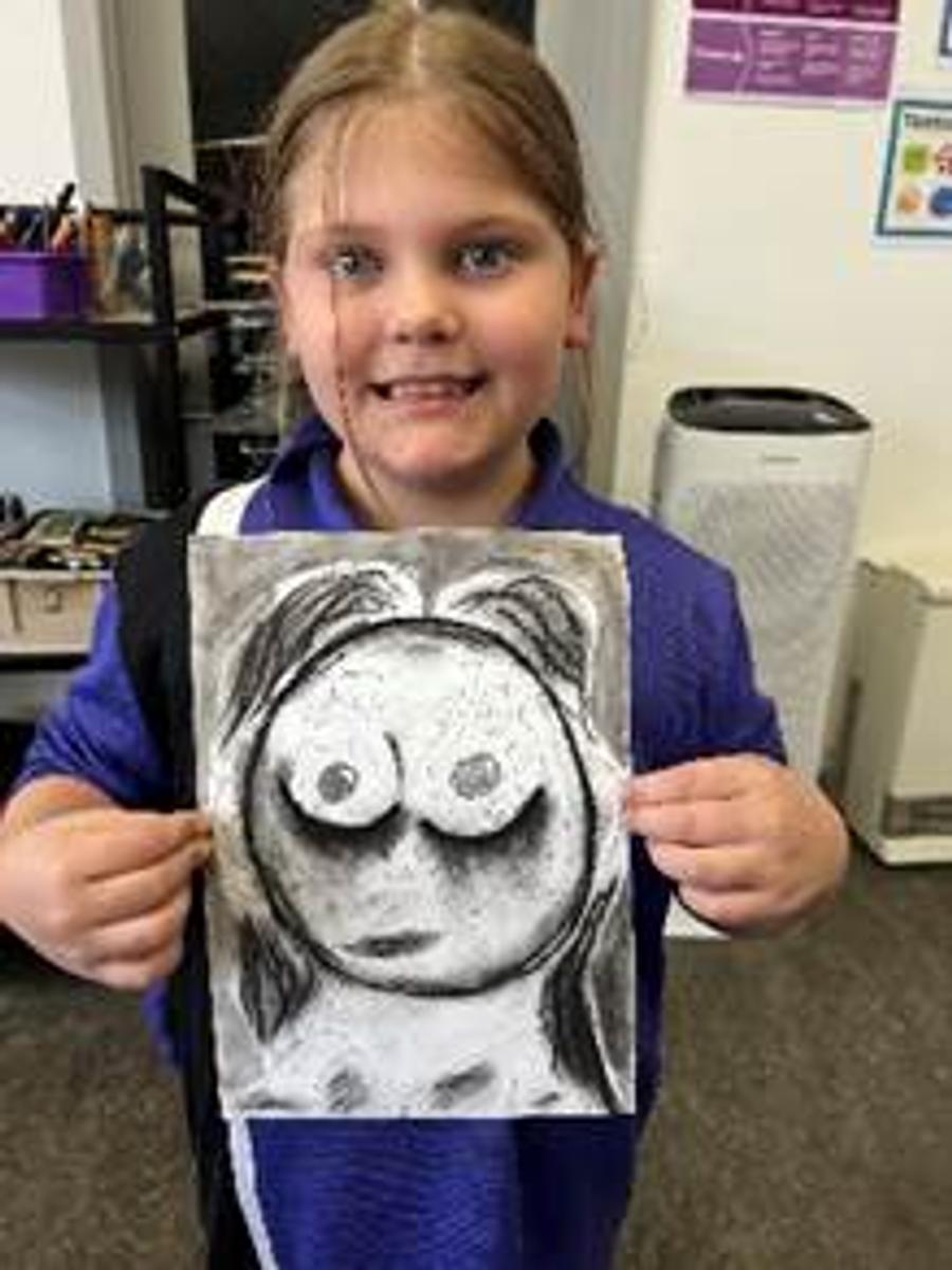 ‘I loved smudging the pastel on my self-portrait. The eyes follow you wherever you go!’ Emmalee WC5 (Emmalee Kreig)