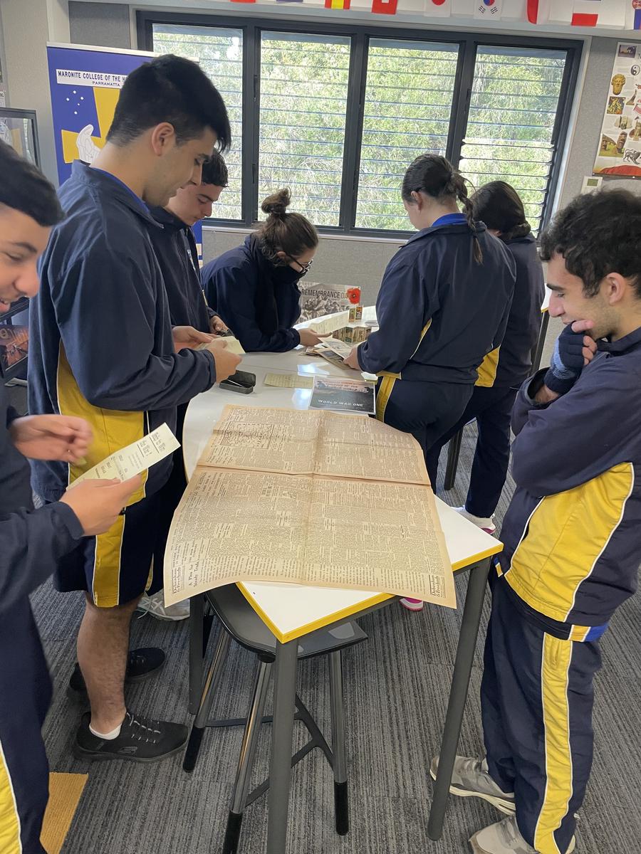 Students were captivated by authentic war diaries, letters from the front, propaganda posters, newspapers, and government documents. These powerful sources, alongside artefacts from our History, Geography and Culture Museum (C205), brought the realities of war to life in an unforgettable way.