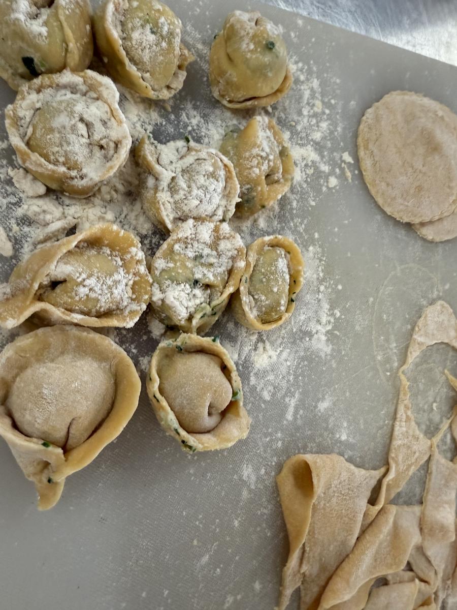 Our talented students crafted delicious spinach and ricotta tortellini, putting their theoretical knowledge into practice.