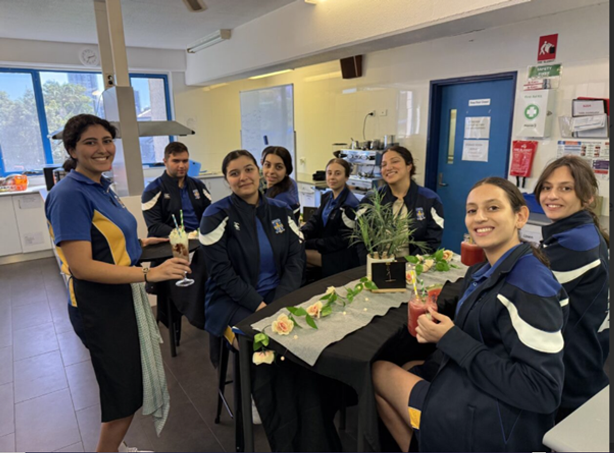 Year 12 Hospitality students have been extremely busy completing their Food and Beverage module. Throughout the year, they’ve built essential technical skills required to prepare the service outlet, interact with customers, serve and clear food and beverages, and complete end-of-service tasks. They also prepared and served a variety of non-alcoholic beverages to staff and peers, who provided constructive feedback.