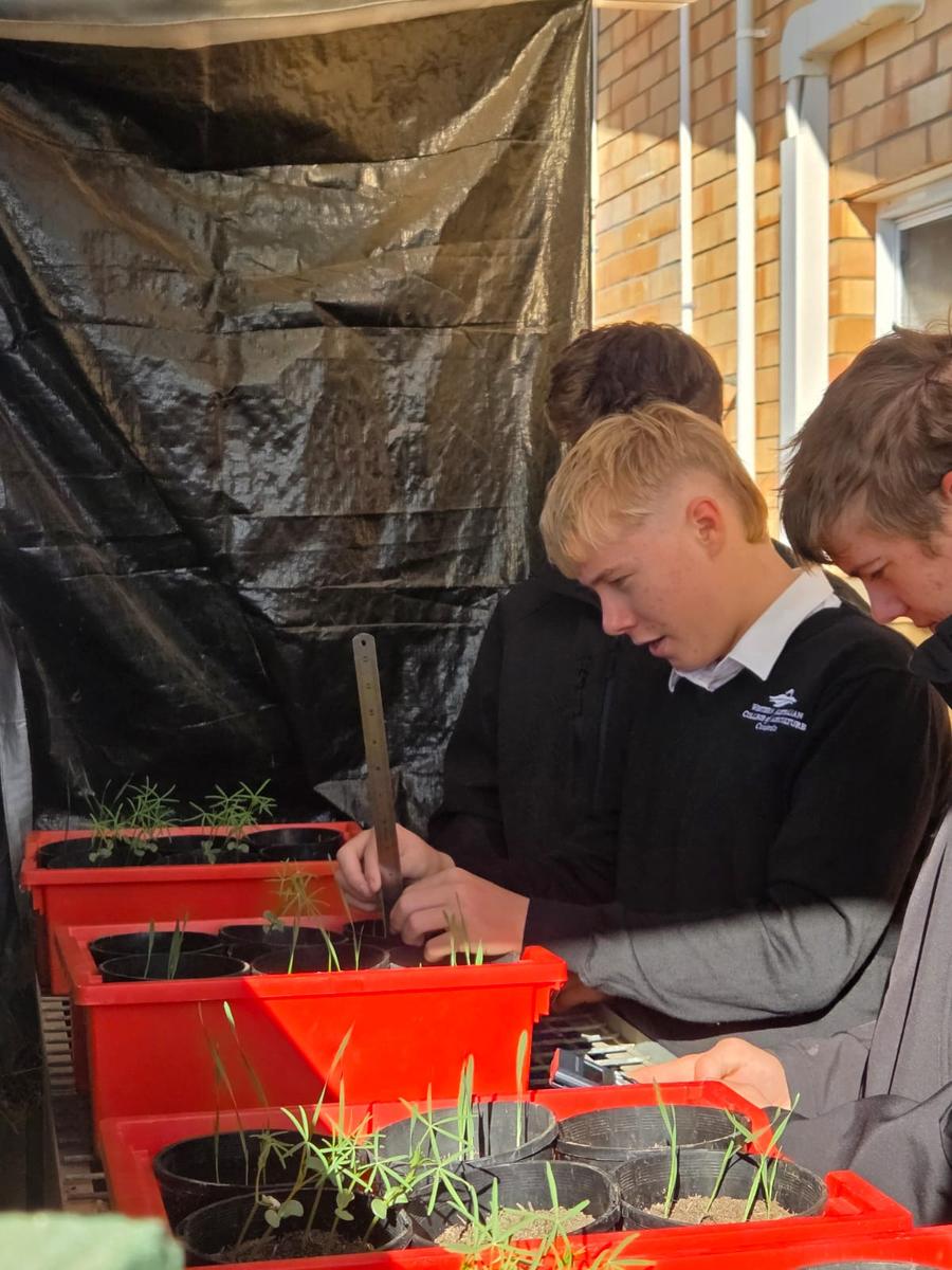 The 12 Plant general class has been busy prepping for their ESTs and monitoring their seeding depth trial. In the seeding depth trial, the students are investigating the optimal sowing depth for canola, lupins wheat and barley. For the next term, they will look at how seeding depth has affected the germination and plant development of their crops.