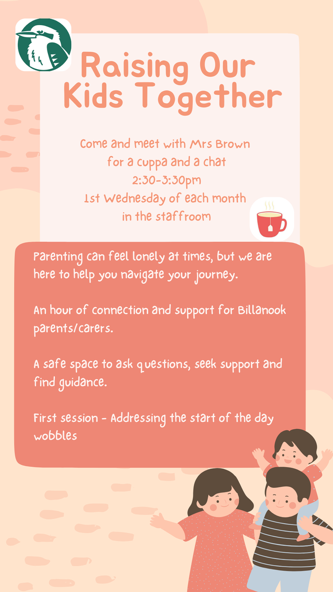 We will be launching our first Raising Our Kids Together cuppa and chat session next month. On the first Wednesday of every month, from 2:30-3:30pm, I will be inviting parents and carers to meet me in the staffroom for a cuppa and a chat.