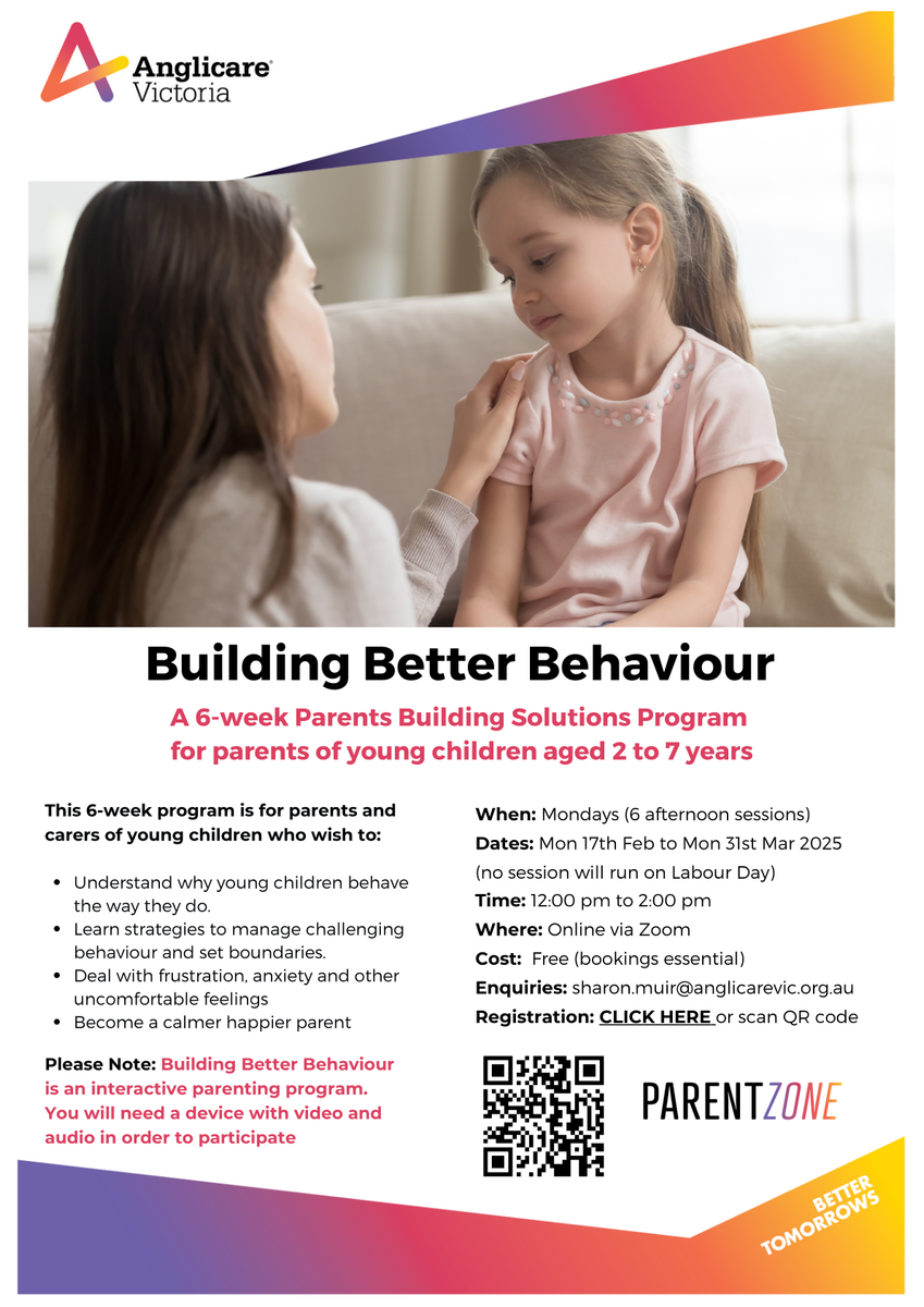 A 6-week program is for parents and carers of young children aged 2-7 years who wish to: