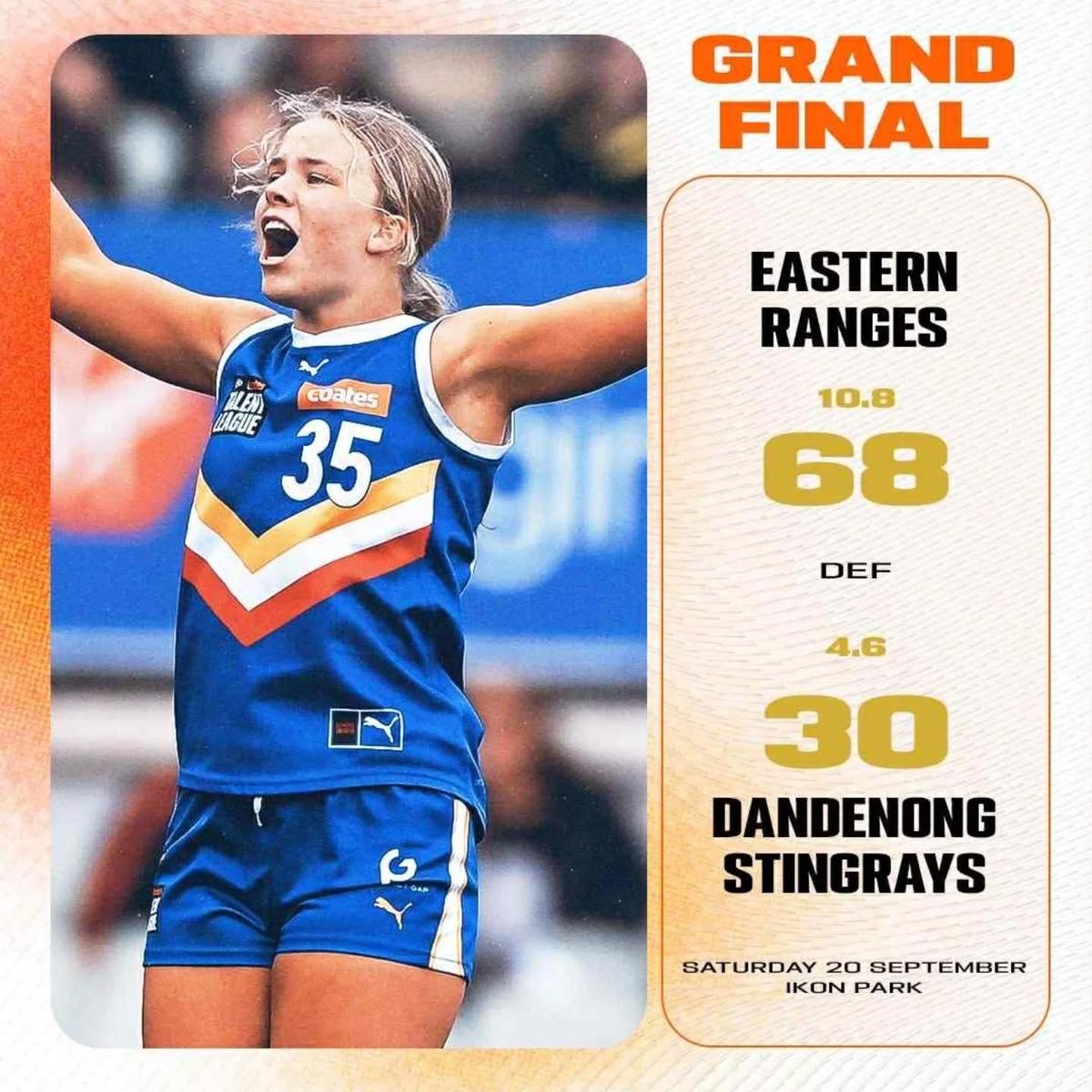 Congratulations to our very own Tayla McMillan (Yr 12) and Scout Semple (Yr 11) who were a part of the Eastern Ranges team that won the Coates Talent League Grand Final, at on 20 September!
