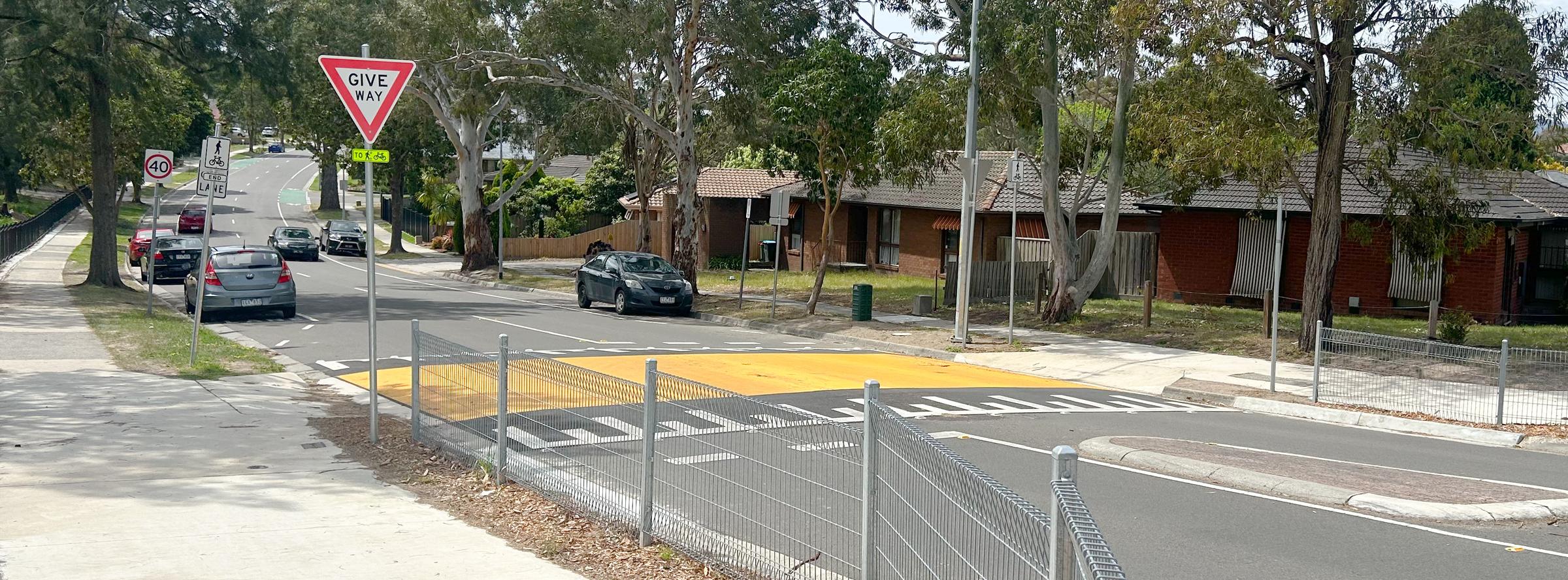 As part of Knox Council’s shared path project, a yellow-painted, raised crossing was installed outside our school near the roundabout of Amesbury Ave and Harold St, for student safety.