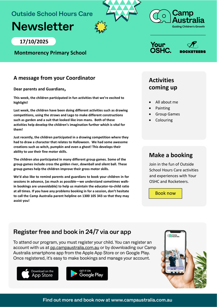 For more information about our program and fees at your school, visit us in service and chat with our qualified Educators.  Alternatively, you may visit our websitewww.campaustralia.com.auor contact our friendly Customer Care Team