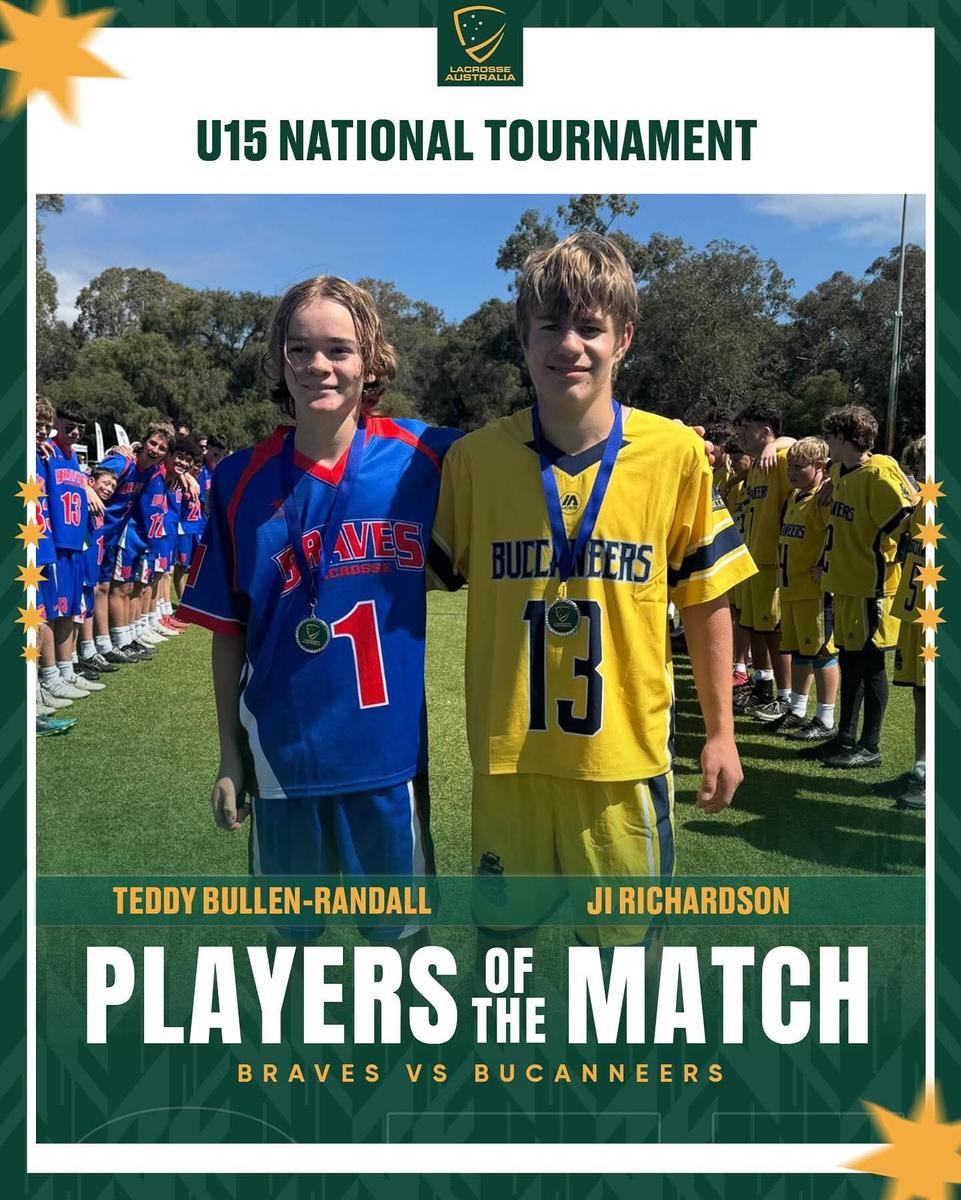 Jacob Juricev (9.8) and Ji Richardson (9.1) were honoured to be selected for the U15 National Lacrosse Championship, held over seven days during the school holidays at Alderbury Reserve, Floreat.