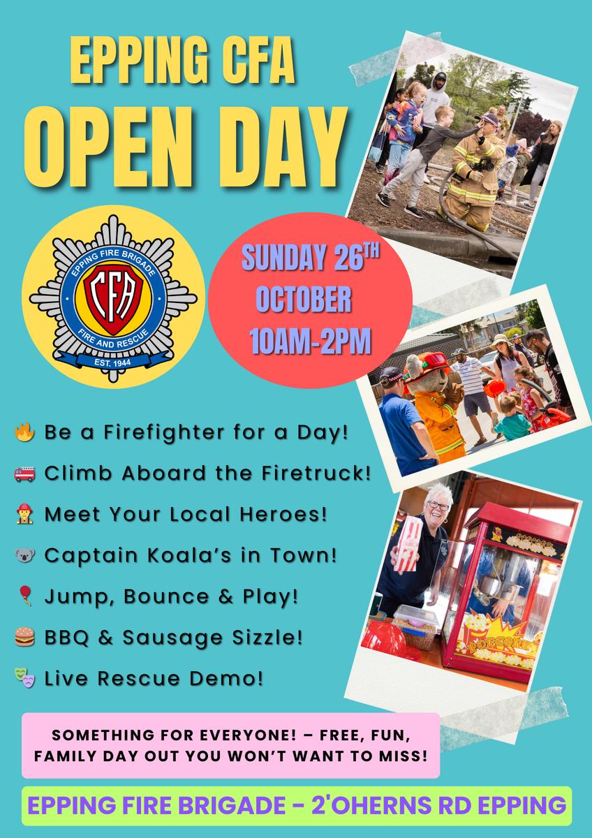 The Epping Fire Brigade will be holding their annual Open Day on Sunday 26th October 2025 at their station in Epping. This much-loved community event is a fun and engaging family day out, giving locals the opportunity to: