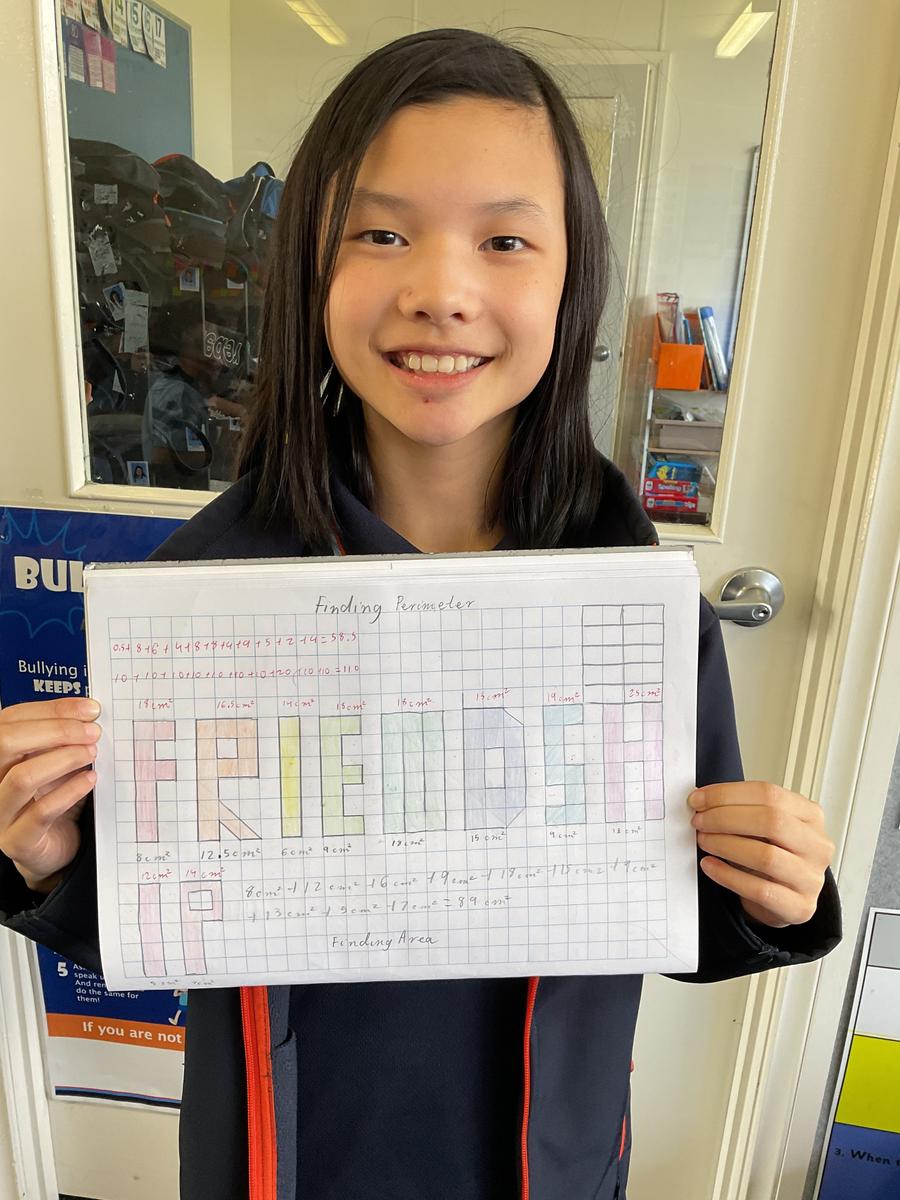 1FB, who were awarded the Kumon Australia Award, also linked their MTQ to their Inquiry unit, ‘How school is different today from when it opened in the 1970s’, focusing on the question, ‘What does difference mean?’ Students explored the word ‘difference’ as both a concept and a key strategy in developing number sense. They learnt that difference in Mathematics can describe how two things are not the same – whether it be size, quantity, shape, or position – and can also represent the result of a subtraction equation.