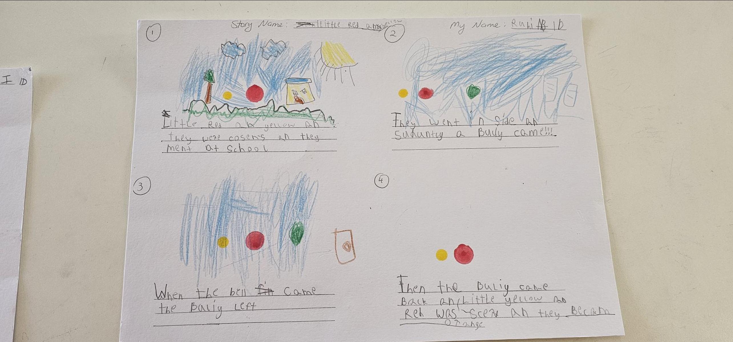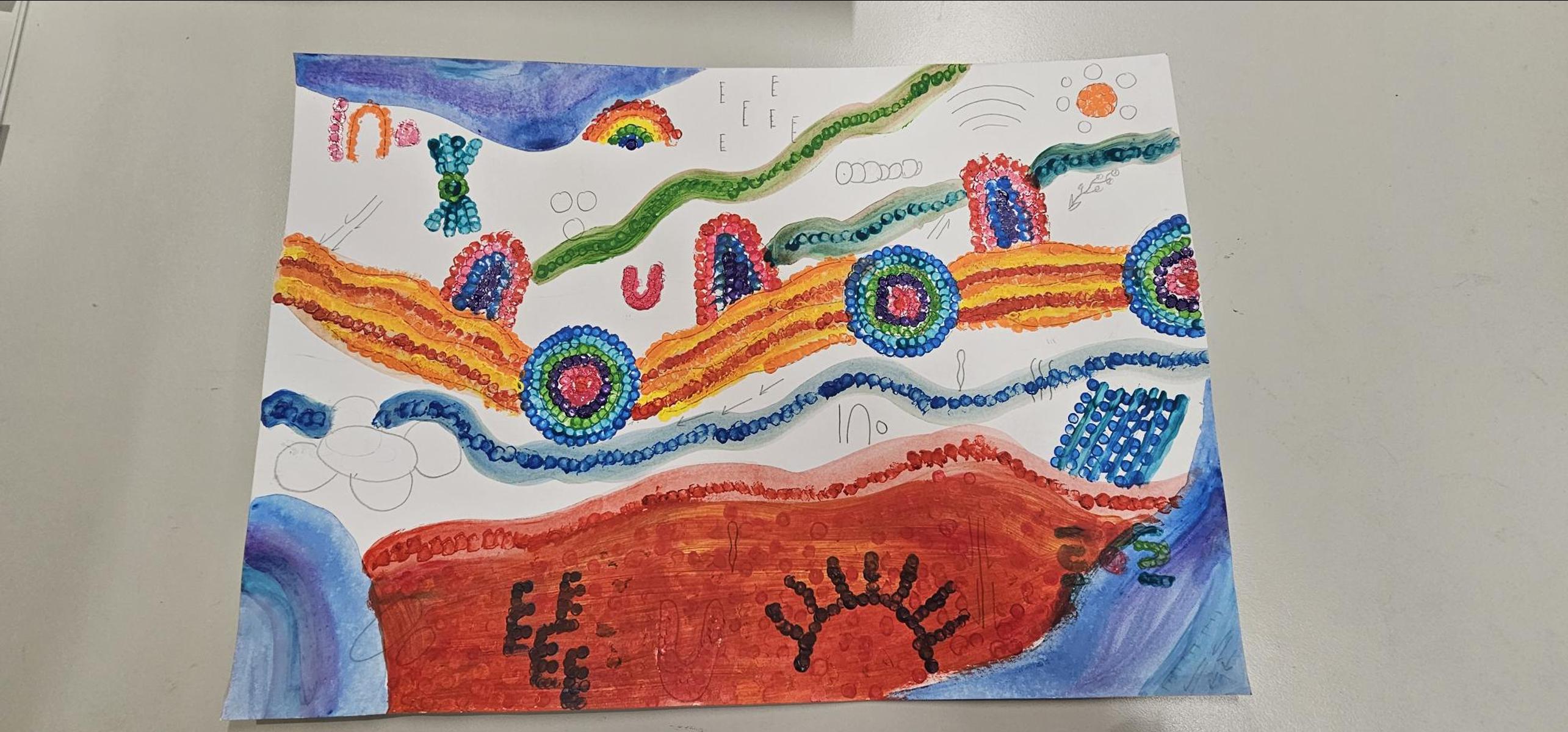 Taking inspiration from the traditional Indigenous art form of dot painting, students have developed their understanding of storytelling and the sequencing of events, representing these ideas and understandings through drawn storyboards and applying learnt dot painting techniques.
