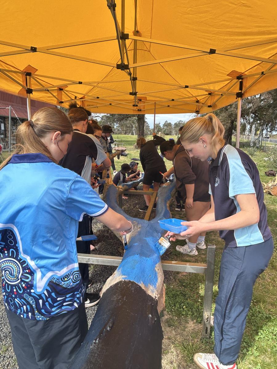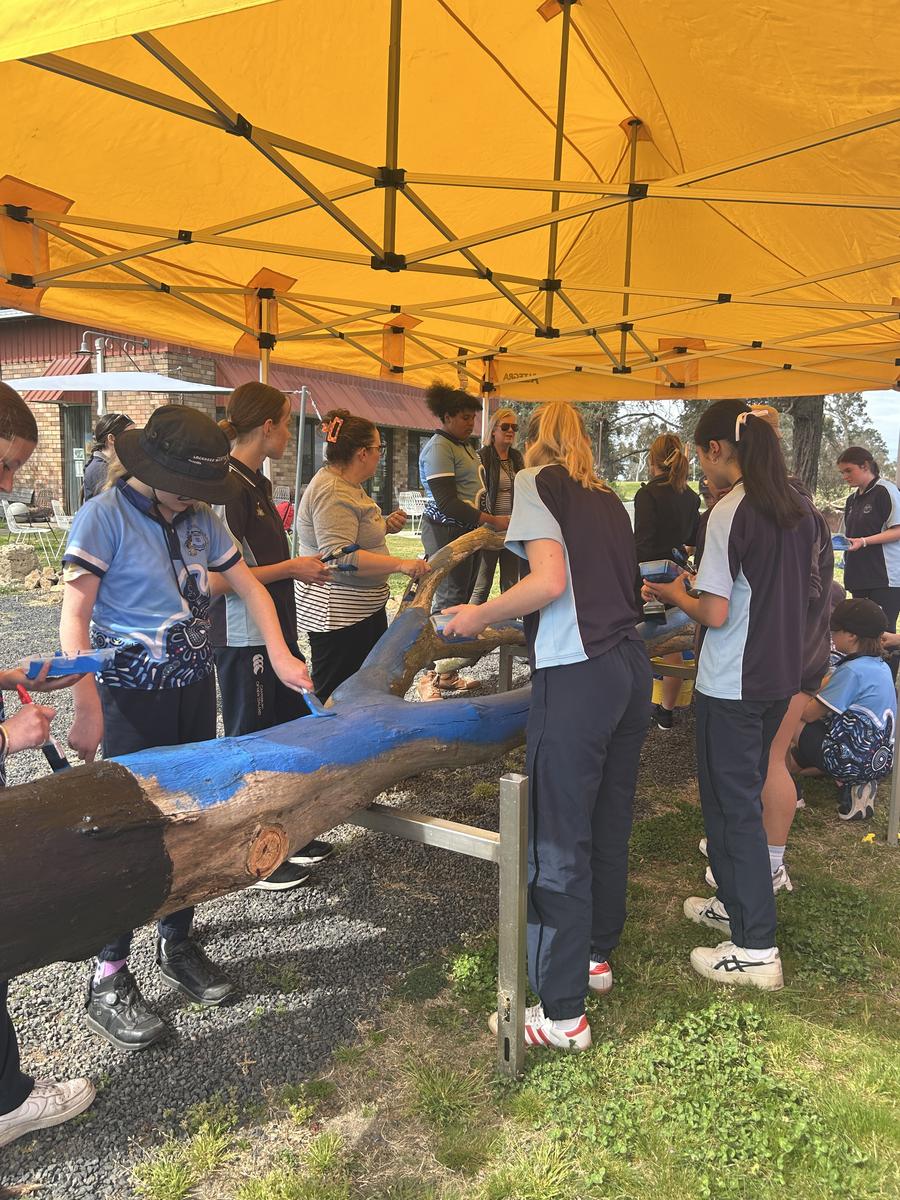 Our SRC students from Years 3-11 were invited by Becca Bakes, The Uralla Blue Tree Project and the Uralla Neighbourhood Centre to join them and students from local schools to paint a new blue tree to help raise awareness about mental health and to start conversations within our community. They also put on a special morning tea for students and spoke to them about the importance of looking after each other and starting conversations about mental health. The Blue Tree will be erected in the courtyard at Becca Bakes. All community members are invited to attend the official unveiling and free community BBQ on Sunday 14, September. At this event community members will be invited to add their handprint to the tree. Thank you to Becca Bakes, staff from the Uralla Blue Tree Project and the Uralla Neighbourhood Centre for including us in this important community initiative.