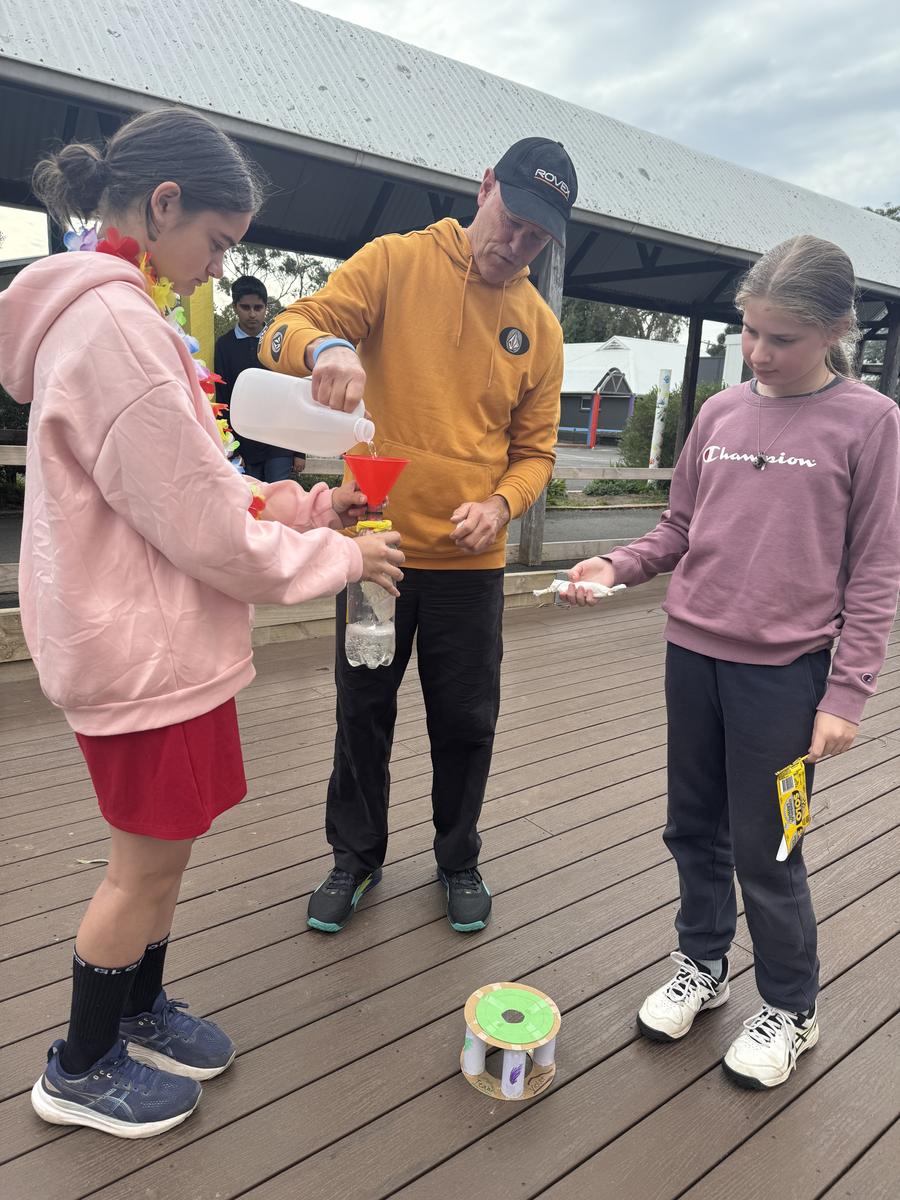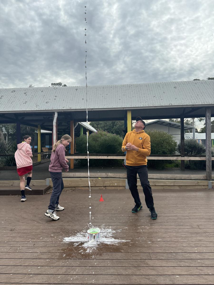 A highlight was our bi carb and vinegar rocket experiment where we created pressure via a chemical reaction of bicarb and vinegar. There were lots of variables but some launches were really exciting. Our hypotheis that a changed state could be created via a chemical reaction was confirmed with the creation of a gas to power the rocket.