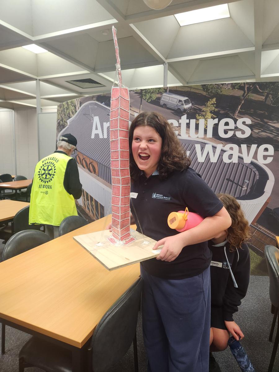 Windy Wobblers had it won with the tallest building but unfortunately saw a collapse in the last second of the fan being applied. The feedback from judges was that this was the best competition design but a small construction component miss possibly caused the collapse. Fantastic effort.