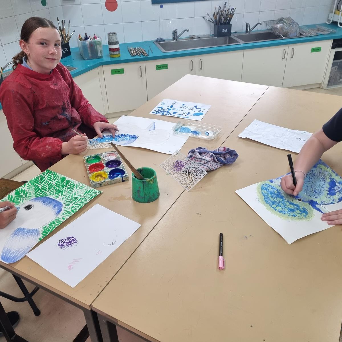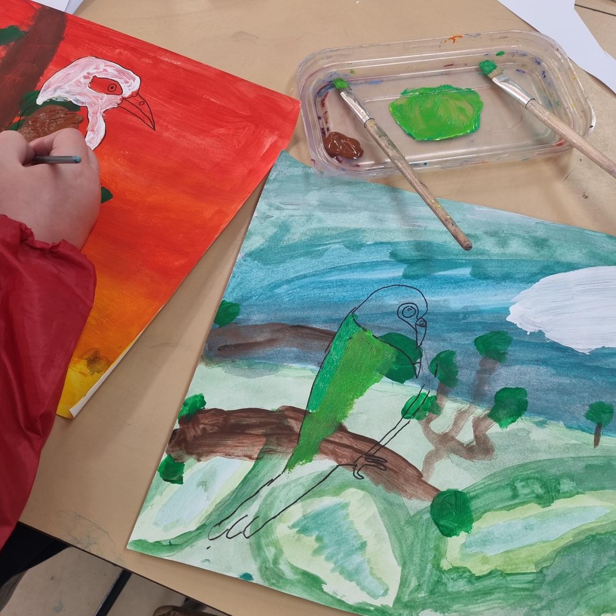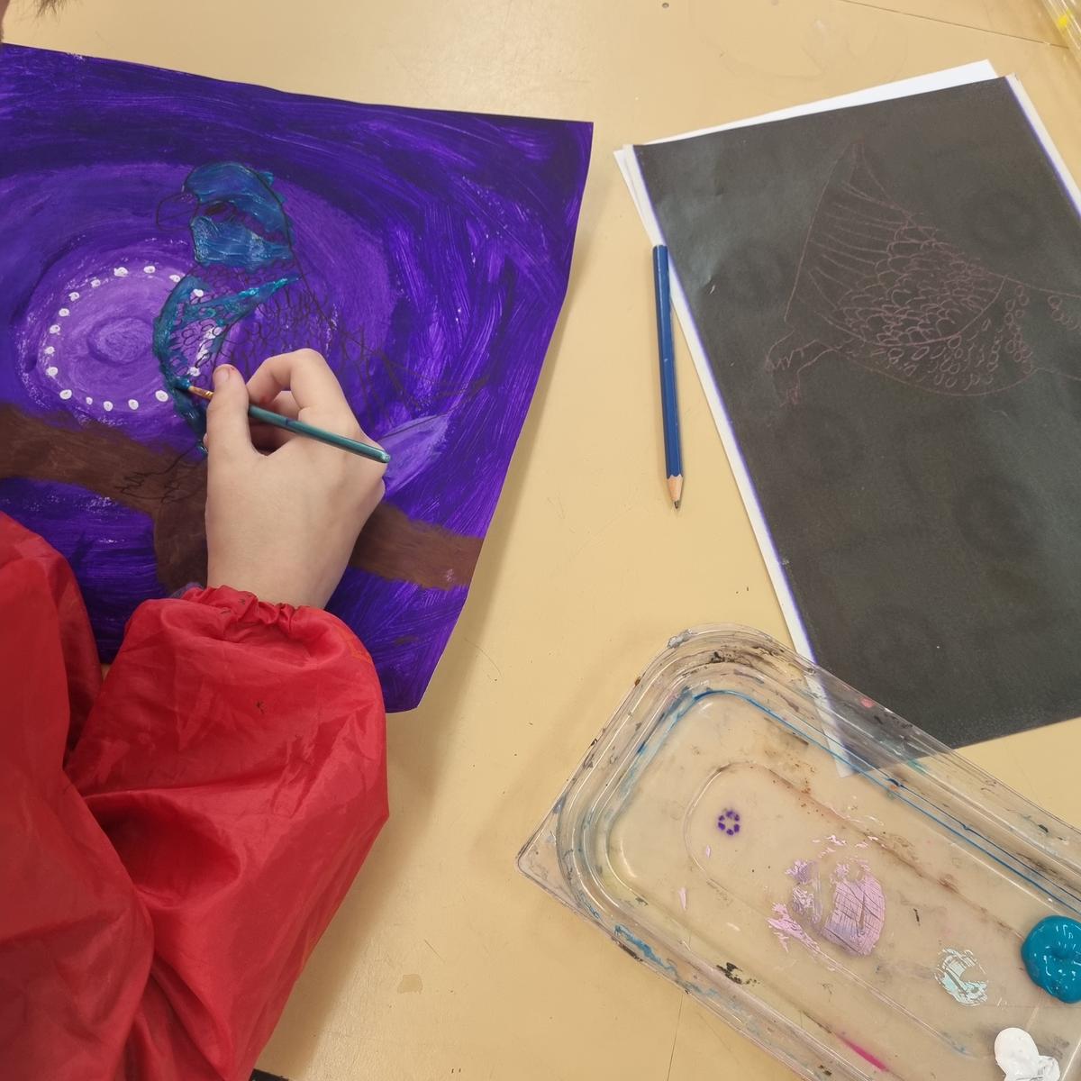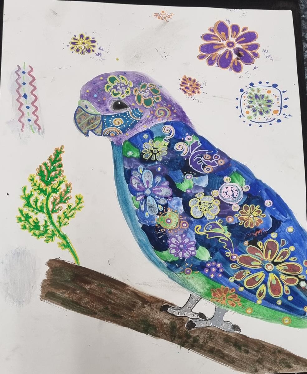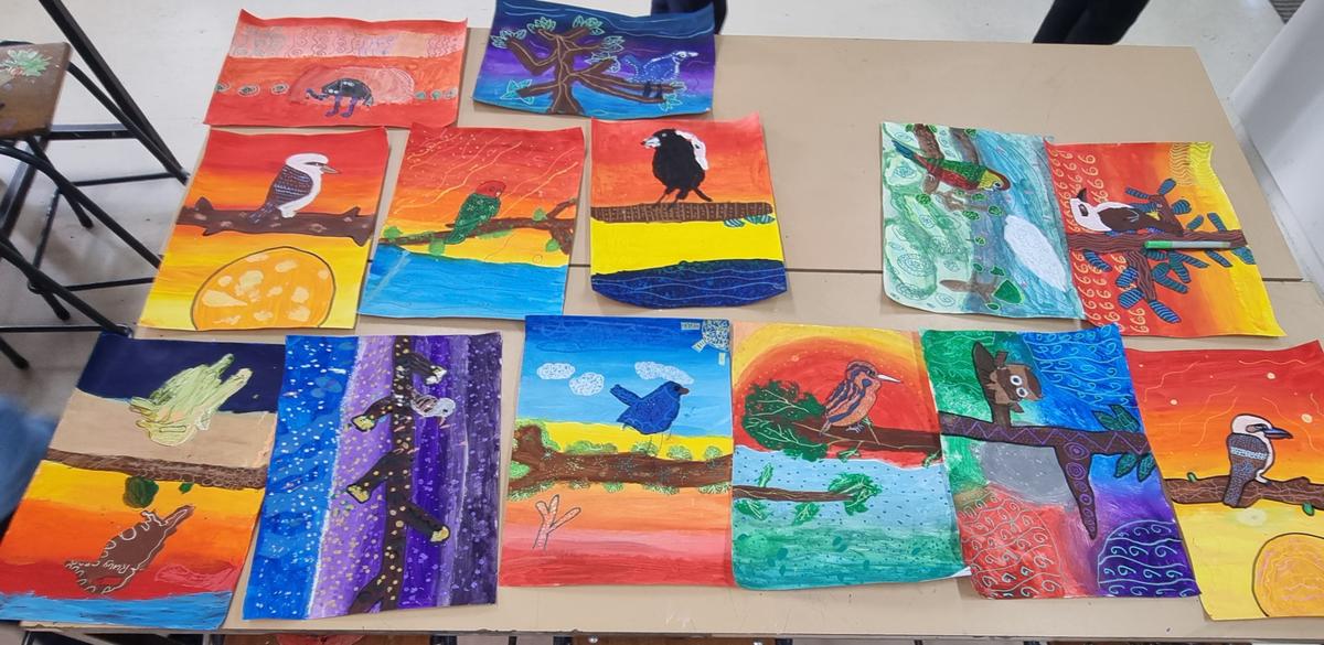 In Visual Arts this term, students have continued to explore the work of Aboriginal and Torres Strait Islander artists. Over the past weeks, students have put a huge amount of effort into their Visual Arts projects, and the results are simply outstanding. Foundation and Year 1 students designed their own personal symbols and combined them into bright, patterned paintings after learning about the work of Merindah Gunya. In Years 2/3, students explored colour and pattern through landscapes inspired by Bronwyn Bancroft, showing real skill in creating depth within their designs. Our senior students took on the challenge of blending bold colours and detailed line work to create striking Australian bird artworks, drawing inspiration from Melanie Hava and Grotti Lotti. The creativity, focus, and pride students showed in their work has led to a collection of artworks that are truly amazing to see.