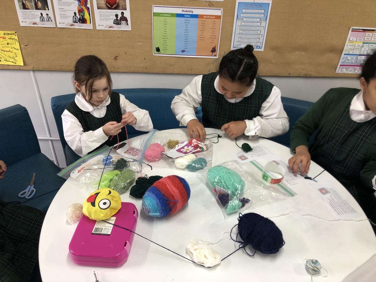 We have learnt how to tie a slip knot, make a chain flower and have just started learning how to make a treble stitch. All students are keen and have been working together to help each other.