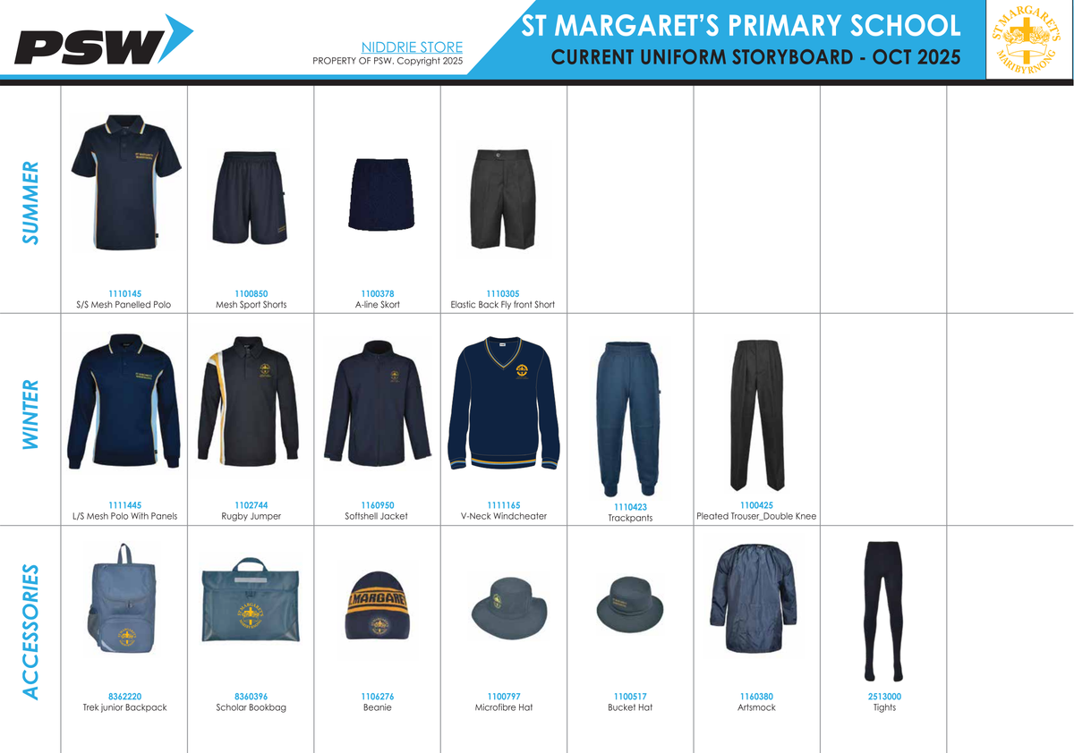 Please note the updated pricing for uniforms as at 1 October 2025.