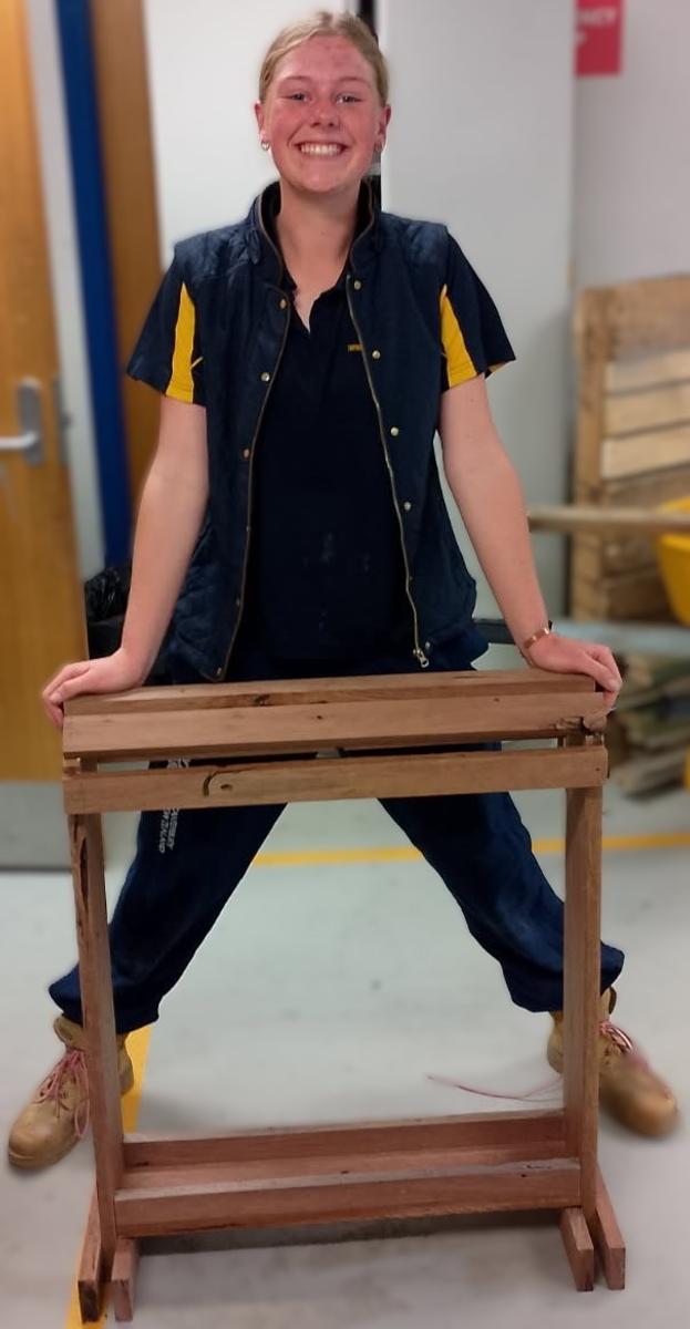 Mr Sproule's Year 9/10 technology woodwork students have produced some remarkable pieces this term. Seen here is Holly with her saddle stand, as well as Bria and Claire with their side tables. Congratulations to all for a job exceptionally well done.