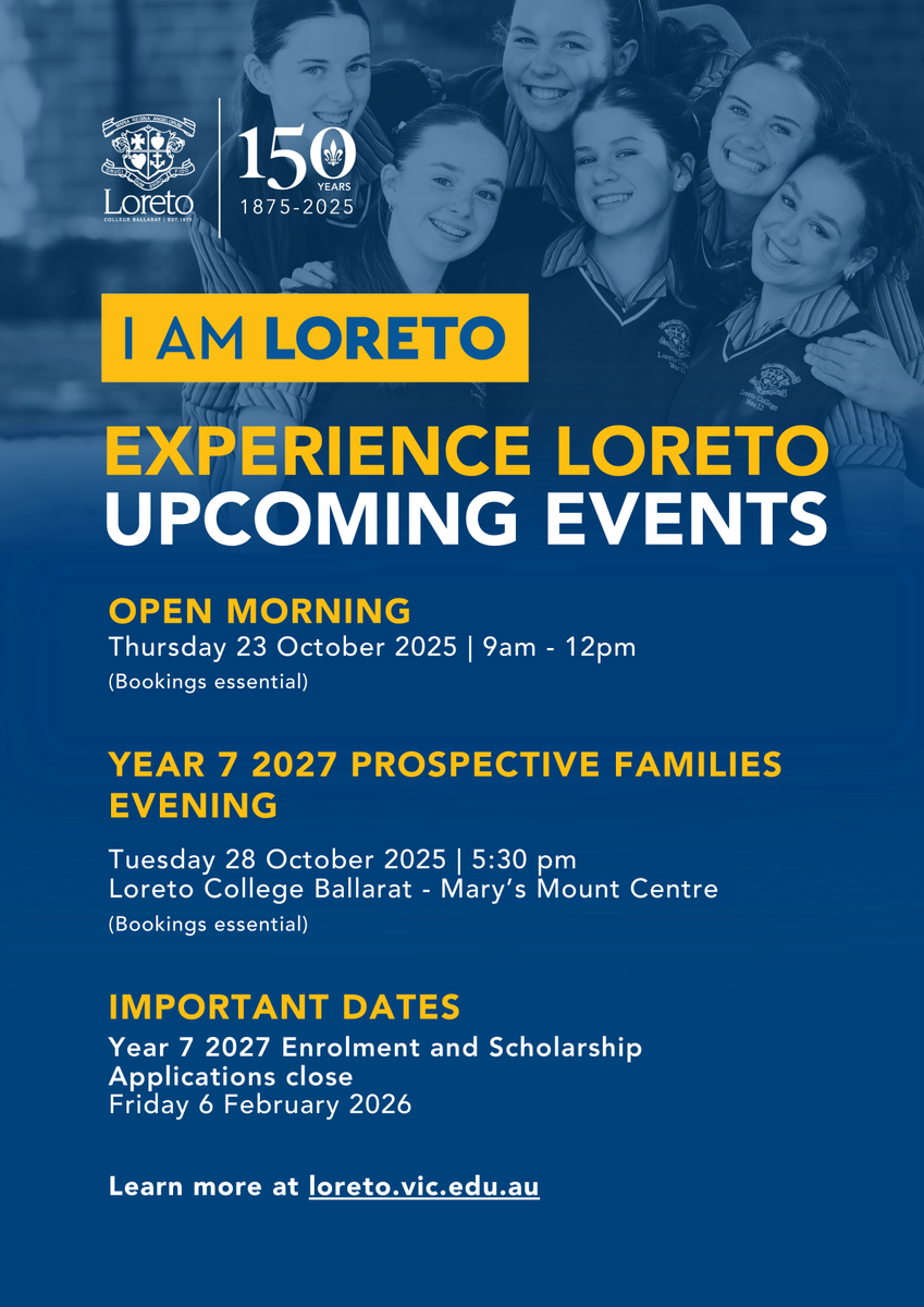 Loreto College invites prospective families to come along to their upcoming Open Morning and Year 7 2027 Information Evening. Open Day is perfect for those families who haven’t toured the College before. At the Year 7 2027 Information Evening, learn more about Loreto life, the future of learning at Loreto College and meet our College Leadership Team and key staff. This evening is for Year 7 2027 (Year 5 Students) prospective parents/carers and students. Please note that availability is limited for both events.