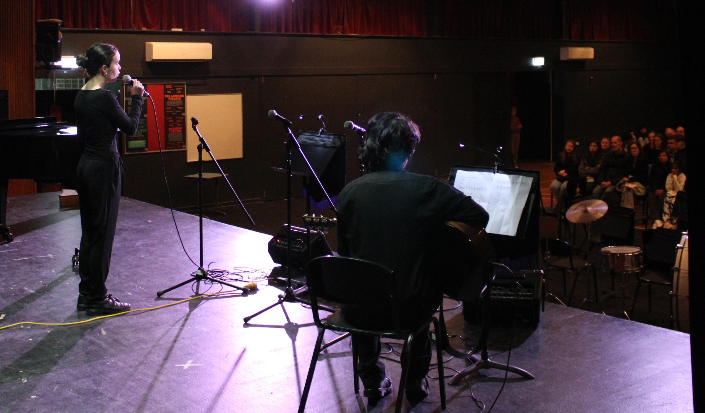 After a short interval, parents and friends were treated to some more intimate performances from Norwood’s talented music students. Audrey, Lexi and Aoife treated us to some delightful harmonies as they sang ‘A Soft Place to Land’ from the musical Waitress. Next Emily was accompanied by Lexi on piano, moving us all with a delightful rendition of Fleetwood Mac’s ‘Songbird’. Then Alex brought their vocal powerhouse to the fore as they belted and purred ‘You Aughta Know’ by Alanis Morrisette and Glen Ballard. To round off our soloists, we were treated to some guitar shredding: Bryn played The Beatles’ ‘Yesterday’ on an acoustic steel string, and Jeremy tackled some Stevie Ray Vaughan with a rendition of ‘Riviera Paradise’!