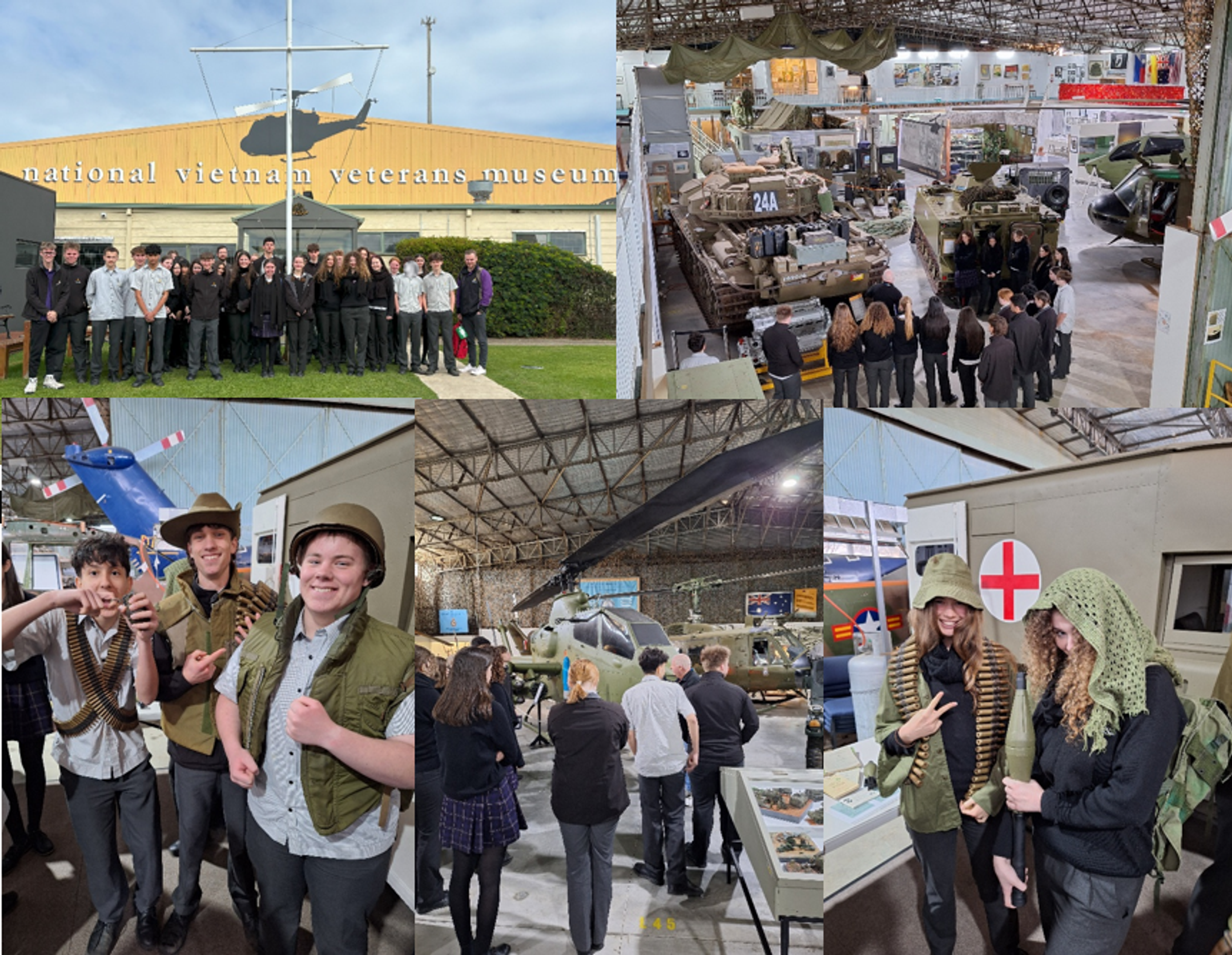 On Monday, 1 September the Year 11 History classes visited the National Vietnam Veterans’ Museum located at Phillip Island. This day was a fantastic opportunity for the students to extend their knowledge and understanding about the Vietnam War though handling genuine military items and talking to Vietnam War veterans. The students were also given the opportunity to view the restoration of a variety of aircraft taking place within the museum.