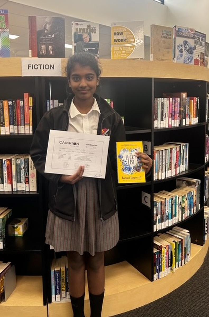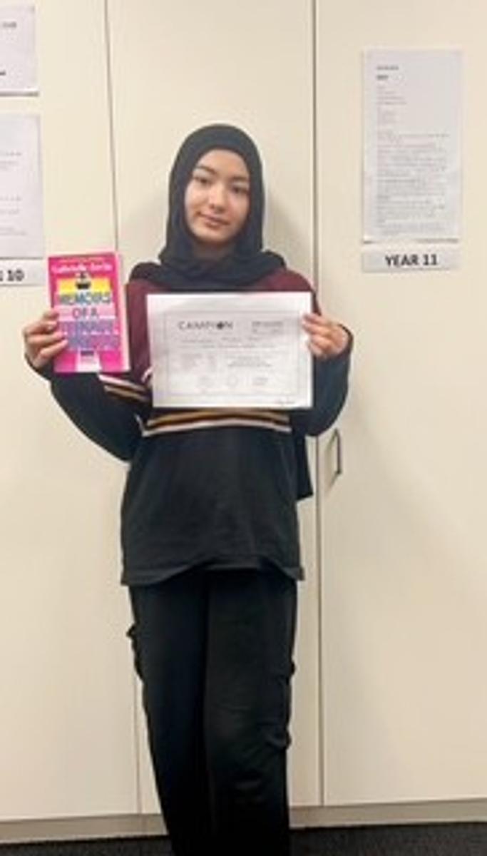 First prize went to Shokria of EAL. Shokria won a $50 Campion Voucher to put towards her books for next year. Shokria gave herself the best possible chance at winning as she entered over 10 micro stories. Well done!