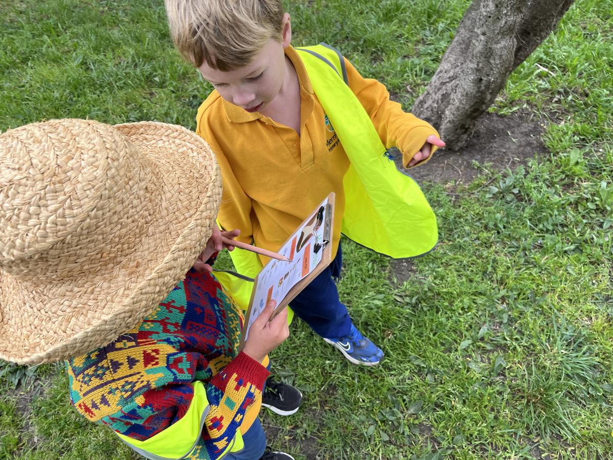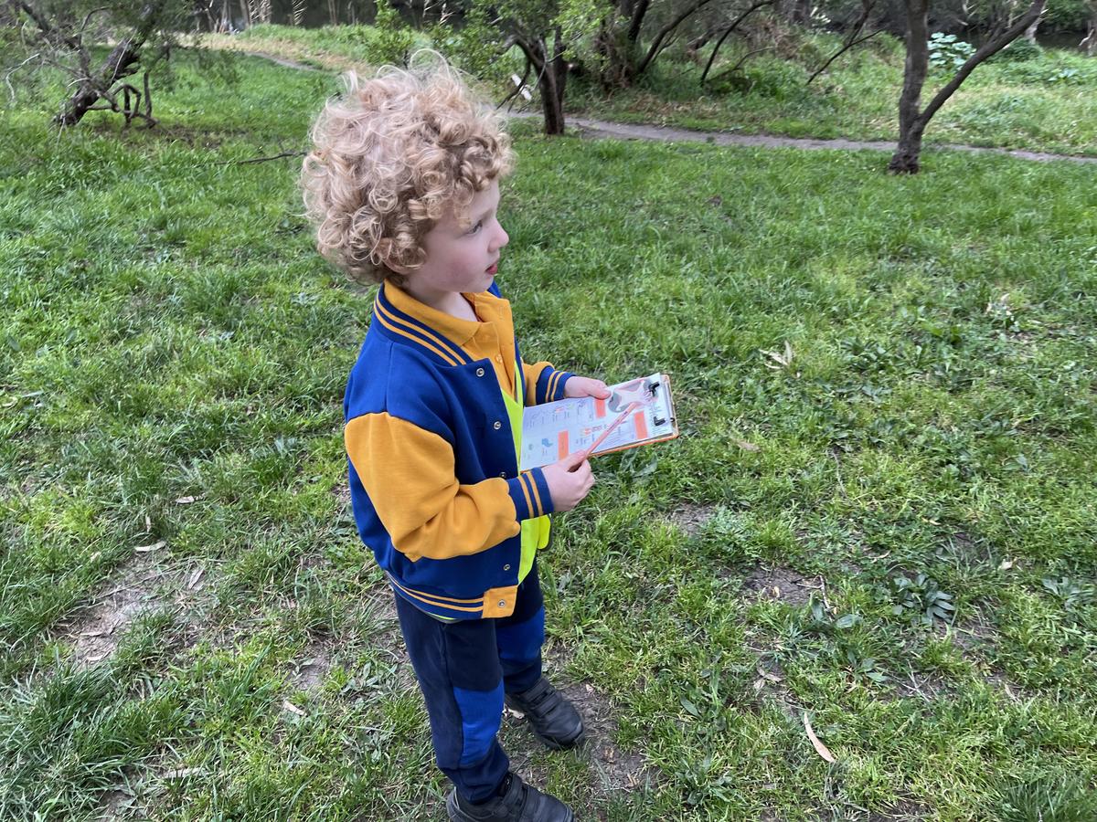 On the second walk, we discussed how our waterways are connected and how the rain flows down gutters to the Merri Merri. We also looked again at seasonal markers to see if we were in Poornet, the next Wurundjeri season. Lastly, we did a habitat survey - where we explored with a checklist to see what might make a good habitat for insects, reptiles, birds and mammals.