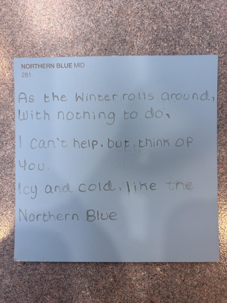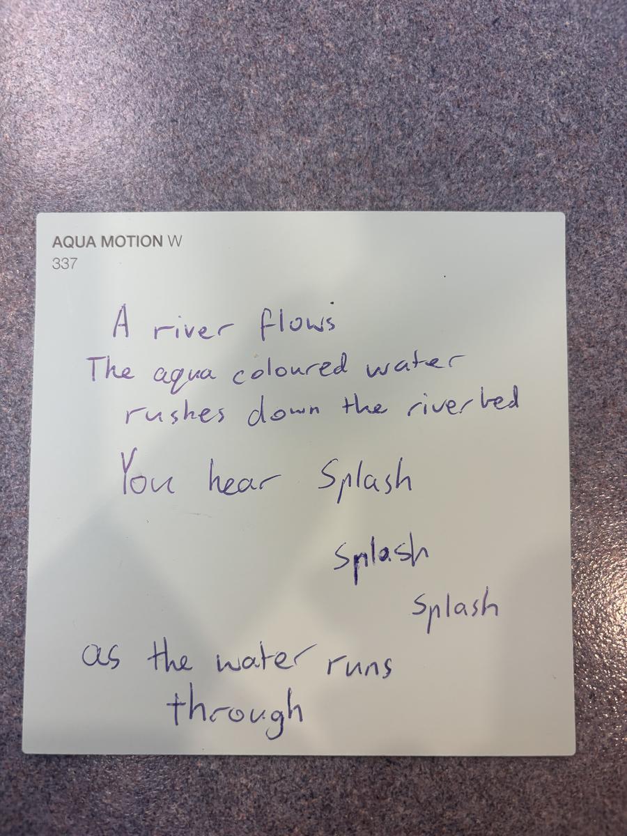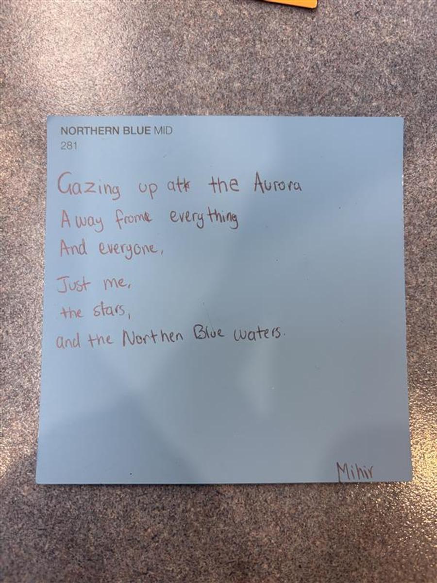 Back in the classroom, students were each given a paint sample card and were instructed to use the title as inspiration for their own poem. With the freedom to write a poem about anything they wanted, they brought enthusiasm to the task. What began with a simple colour name, quickly turned into some impressive pieces of poetry that showed just how creative our students can be.