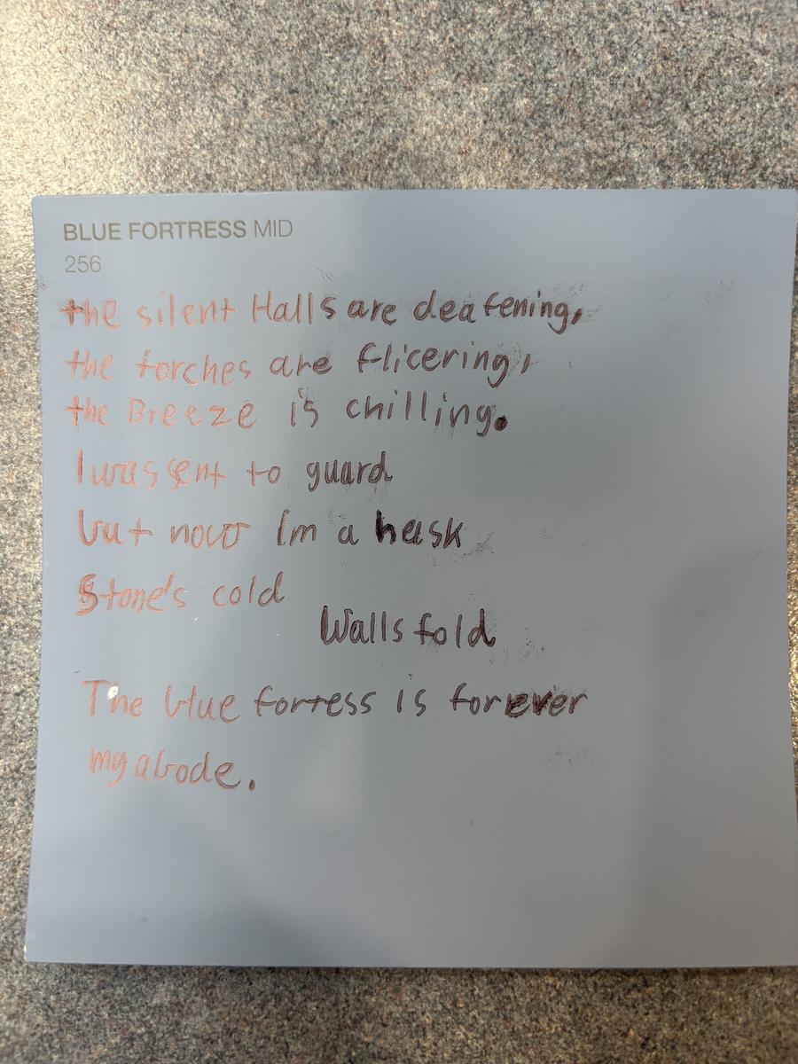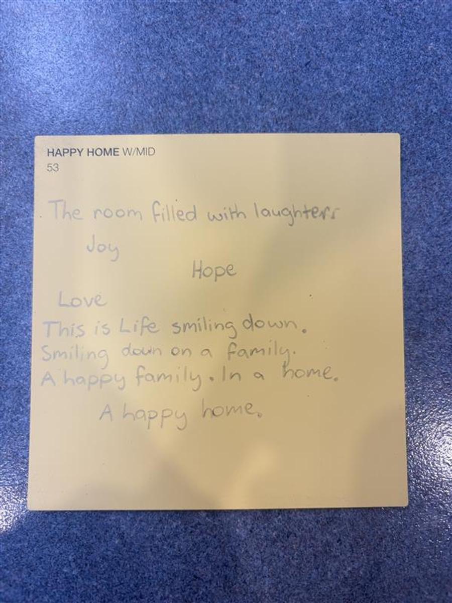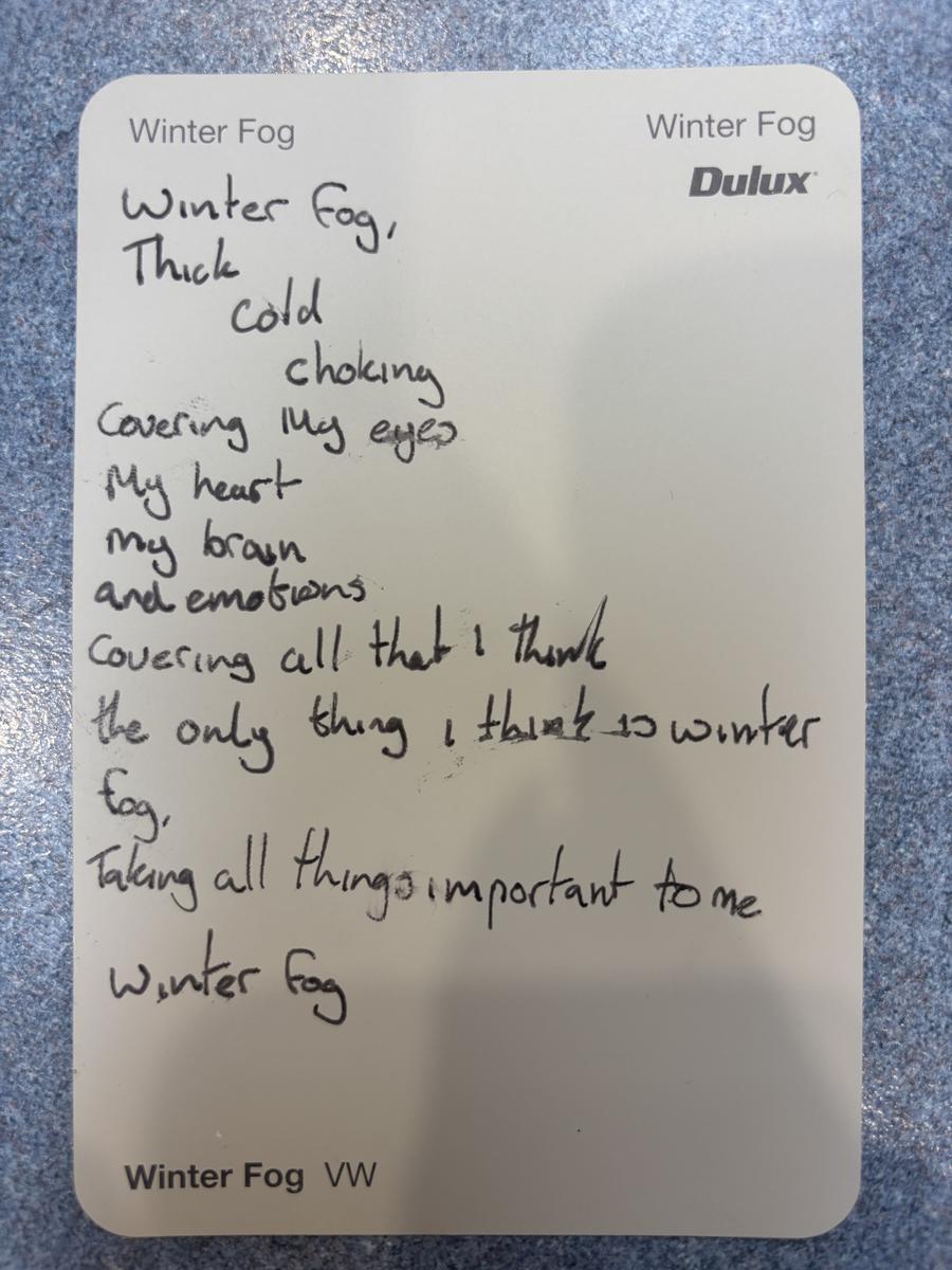 In Year 8 English, we've been diving into the world of poetry as we prepare for our upcoming text study of Forget Me Not. But instead of sticking to the usual classroom resources, we decided to try something new. The Year 8 English team took a trip to Bunnings—not for tools or garden supplies, but for paint sample cards. (If you happened to visit your local Bunnings store and noticed the paint sample wall looking a little empty, we may have been the reason!)