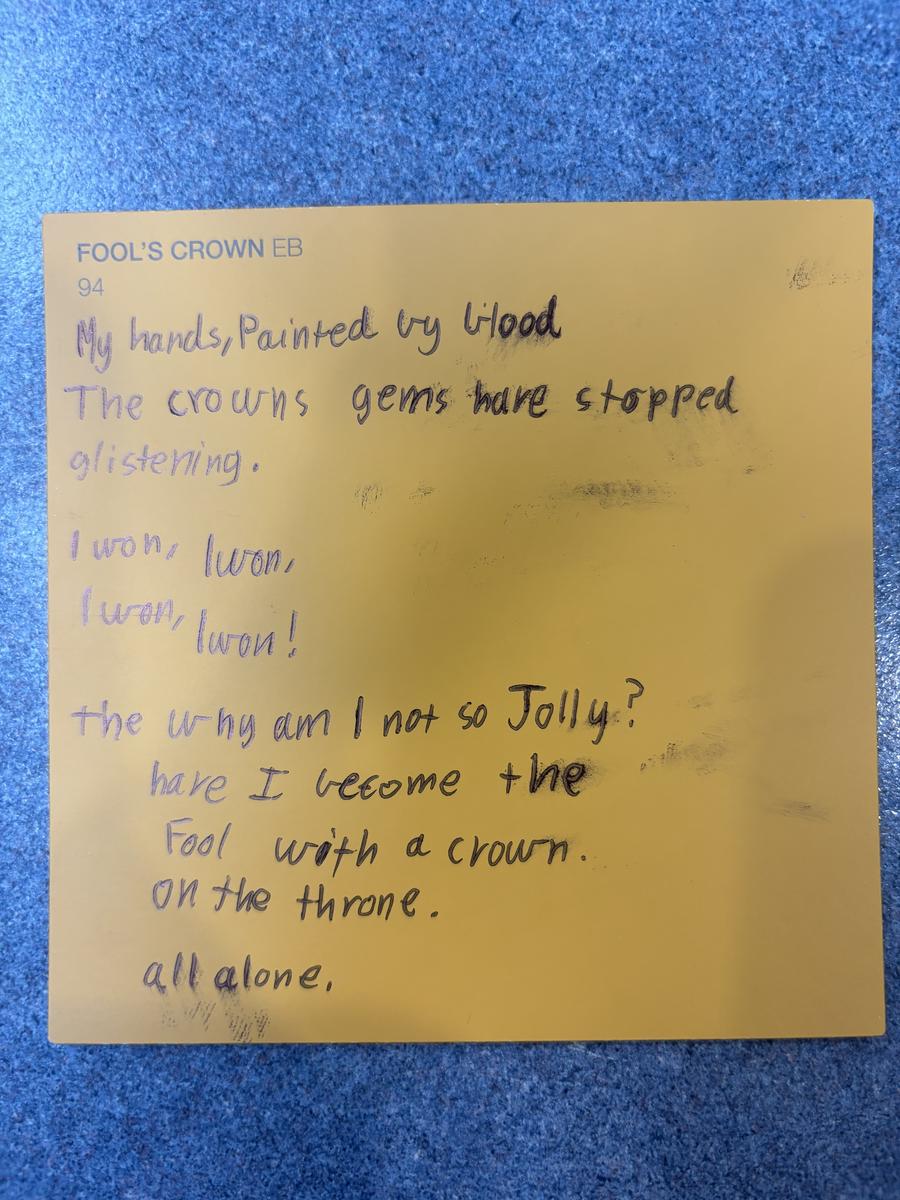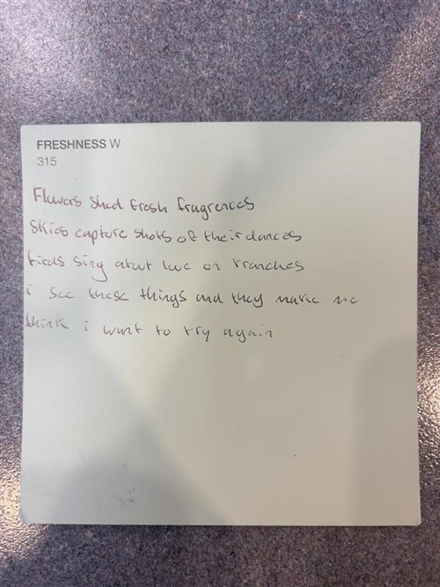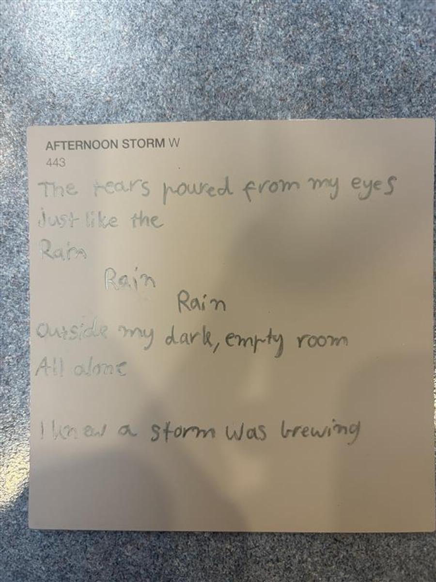 In Year 8 English, we've been diving into the world of poetry as we prepare for our upcoming text study of Forget Me Not. But instead of sticking to the usual classroom resources, we decided to try something new. The Year 8 English team took a trip to Bunnings—not for tools or garden supplies, but for paint sample cards. (If you happened to visit your local Bunnings store and noticed the paint sample wall looking a little empty, we may have been the reason!)