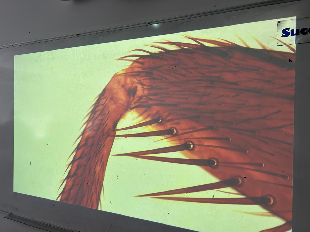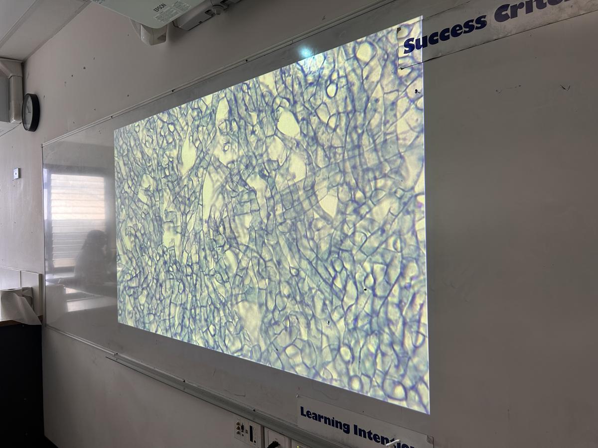 In the last week, the classes have been learning all about microscopes. Teachers have been doing demonstrations with some slides using the demonstration microscope projected to the whiteboard. The students have then been having a go at looking at some preprepared slides of various things before looking at their own specimens under the light microscopes. They have learnt how to focus, magnify, and describe what they see.