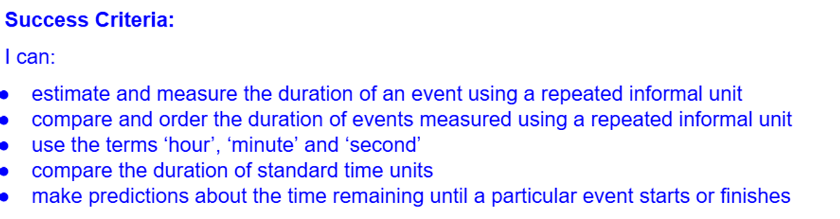 Using the time measures of hour, minute and second in everyday life. For example, It’s 1 hour before bedtime, The food will go into the microwave for 30 seconds or Brush your teeth for 2 minutes – that means counting to 60 twice.