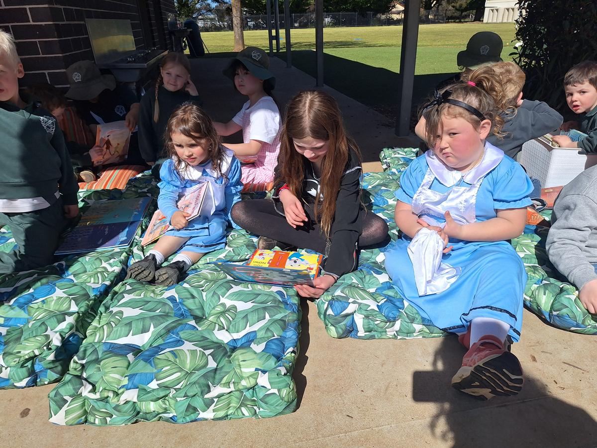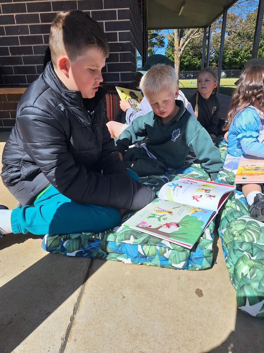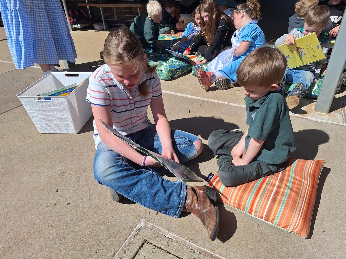 As part of our Book Week celebrations on Friday 5th September 2025, some of our Stage 2 and Stage 3 helpers shared stories with our Transitions students. Thank you to Mackenna, Ayva, Elinor, Sam, Kayden, Charlie P, Vancara and Miles who spent some time leading the reading activity.