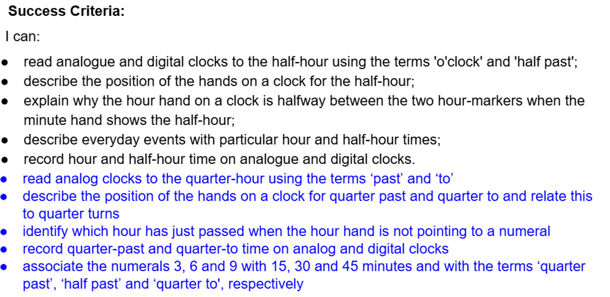 Using both analog and digital clocks around the house to understand how to read half past the hour, quarter past the hour and quarter to the hour time