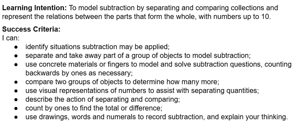 Early Stage 1 - Subtraction - Weeks 8 - 10