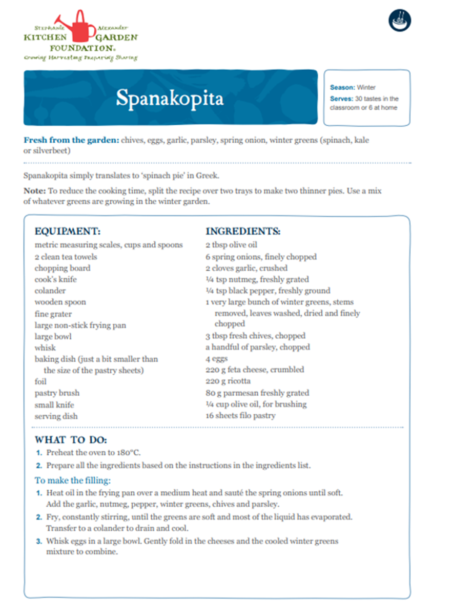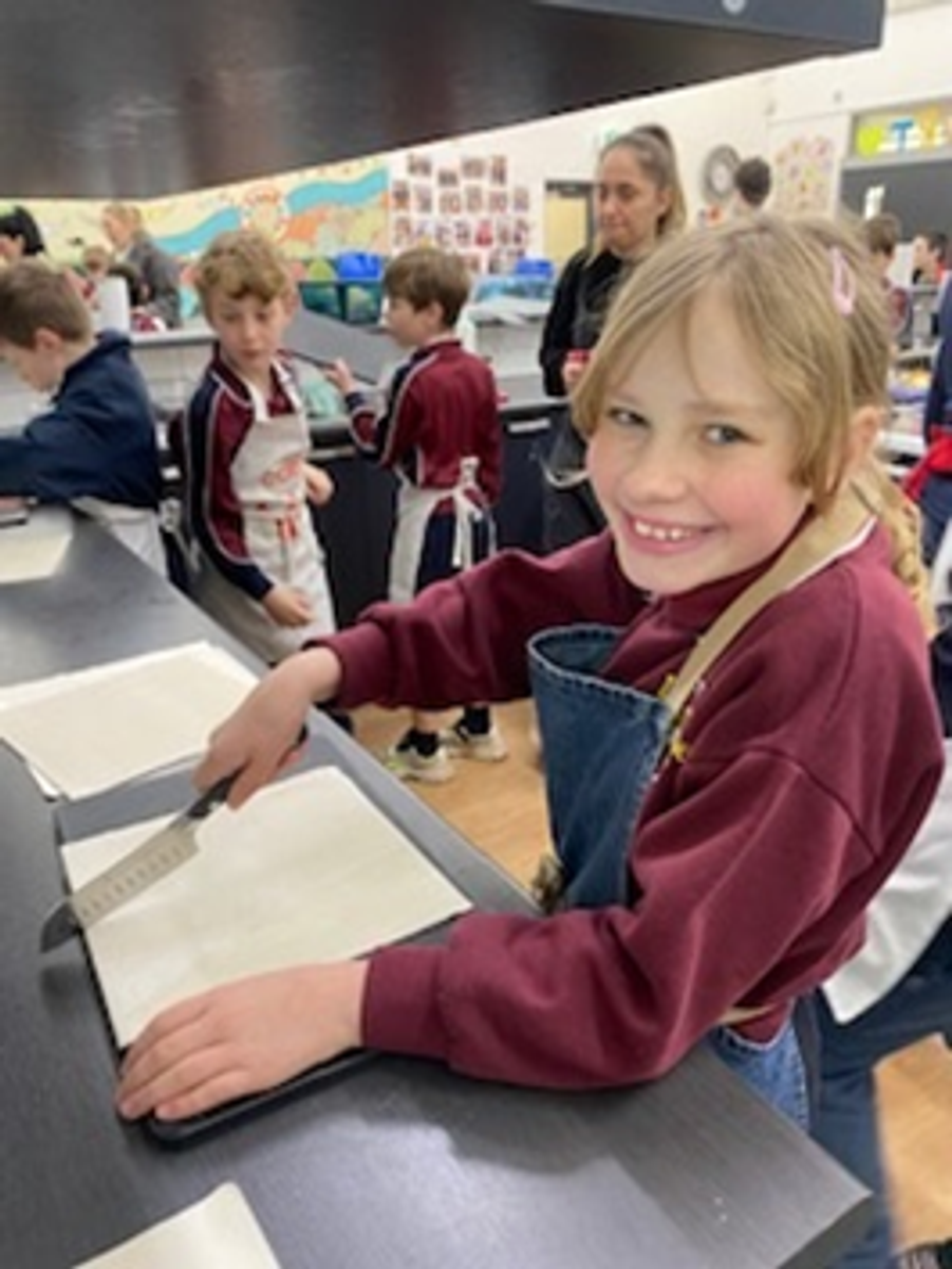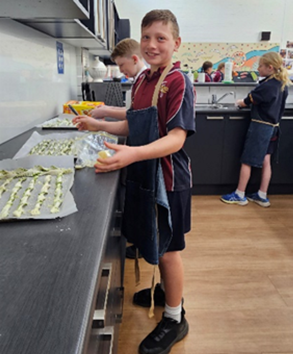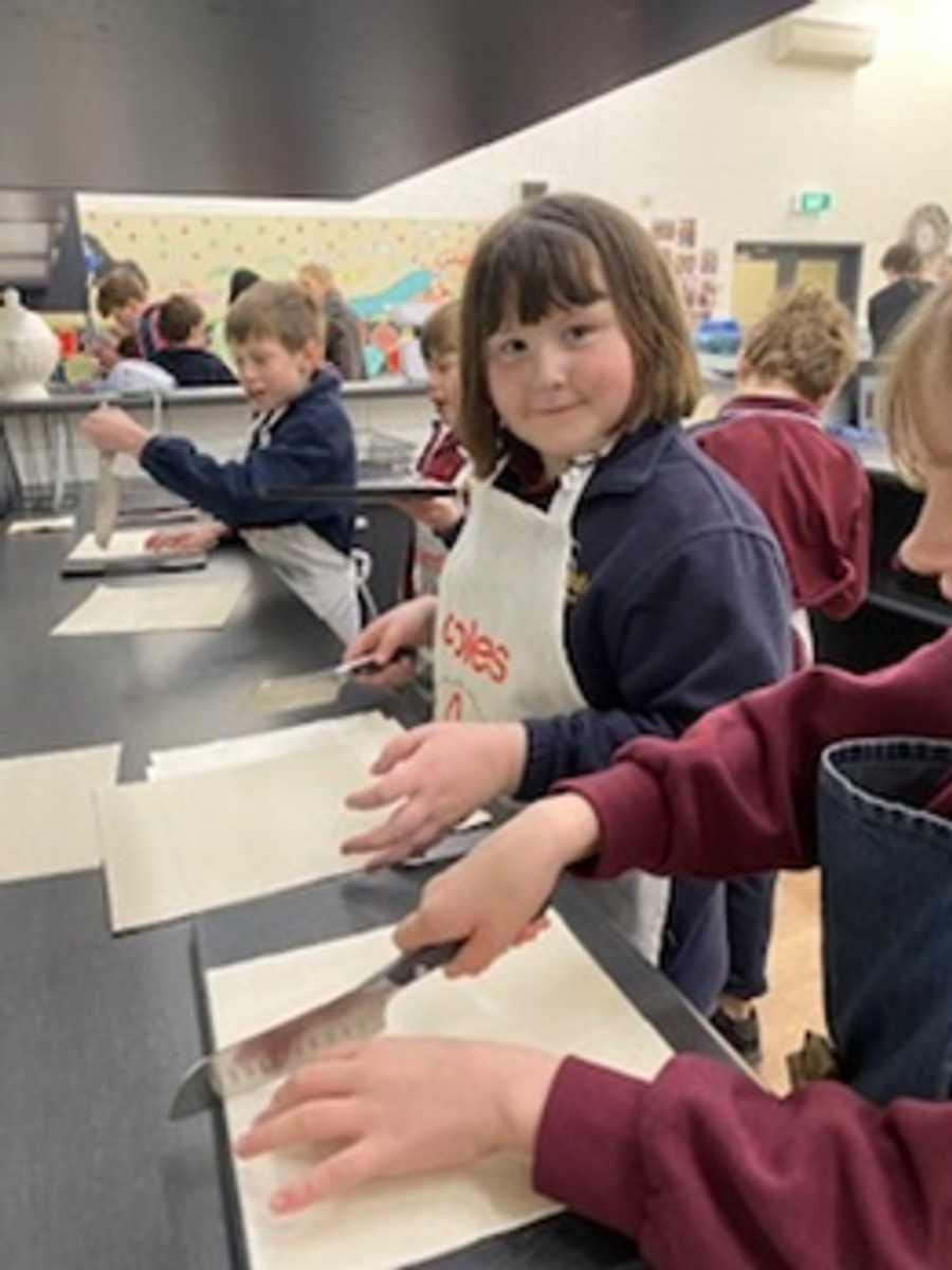 To compliment our soup we made a spanakopita, which uses plenty of herbs and green from the garden, and while we are moving into the planting season our garden is still supplying us with plenty of greens and herbs. We also made pastry straws using the pesto that we made earlier in the term. These are both very flavoursome and a great way to incorporate greens into flavoursome meals. The kids did an excellent job twisting the pastry which became more and more challenging the thinner we made the straws.