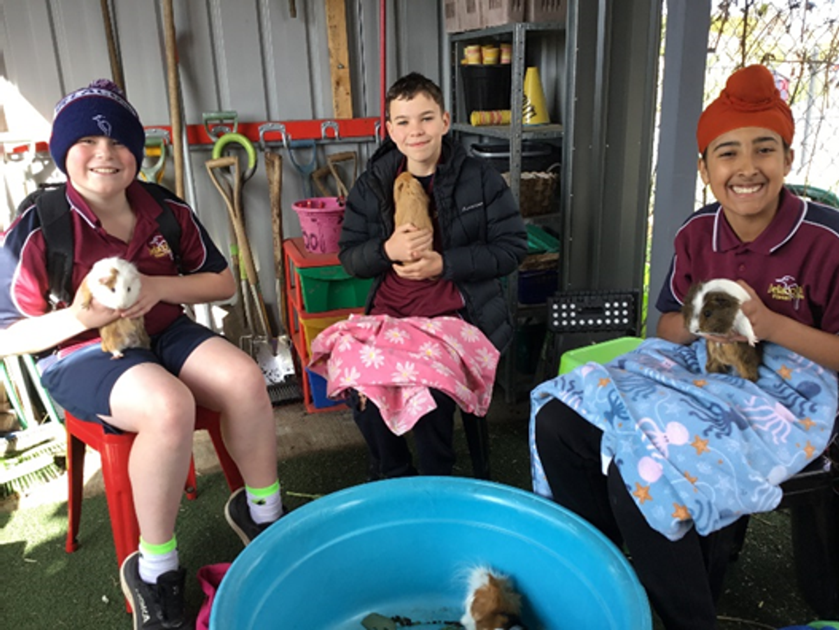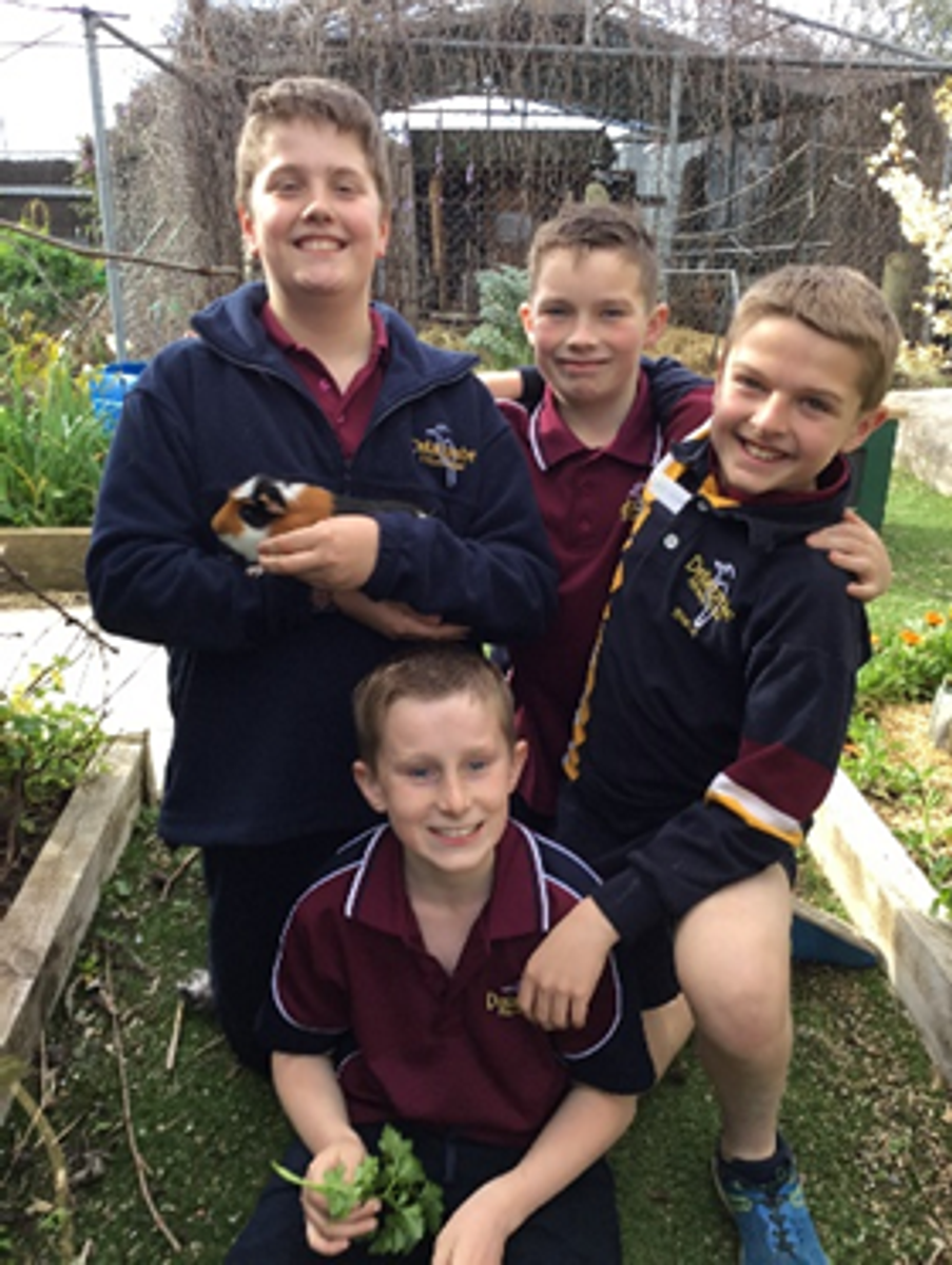 In the garden Year 6 students have their last session this fortnight. We are celebrating by having a Garden Tea Party. Students get to choose 2-3 activities and rotate through them. There has been a guinea pig petting zoo, a chook goodbye, CD weaving & planting a sunflower in a paper pot to take home. Students also get a cup of tea (so many choices!) and a lamington to help with the celebration.