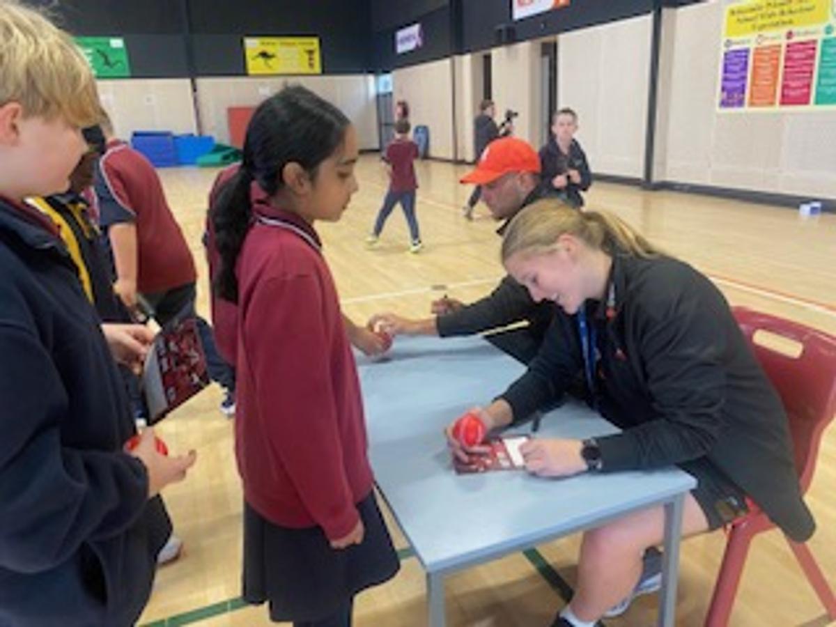 On Thursday 28th of August the Melbourne Renegades came to our school. They were teaching us some of the important things about cricket, such as throwing and catching the ball and that it requires power, speed and precision. The players that came to our school were Fergus O’Neill and Sara Kennedy. They told us about themselves as well as other sports they used to play. Sara plays as a left arm medium bowler and Fergus plays as a right arm medium bowler.