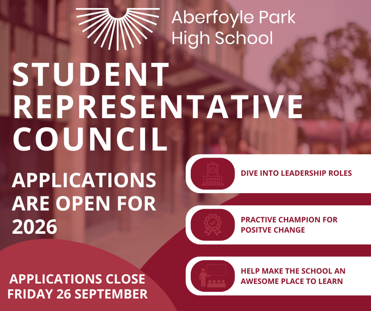 Aberfoyle Park High School would like to announce that applications for the 2026 Student Representative Council (SRC) are now open to students in years 7 to 11.